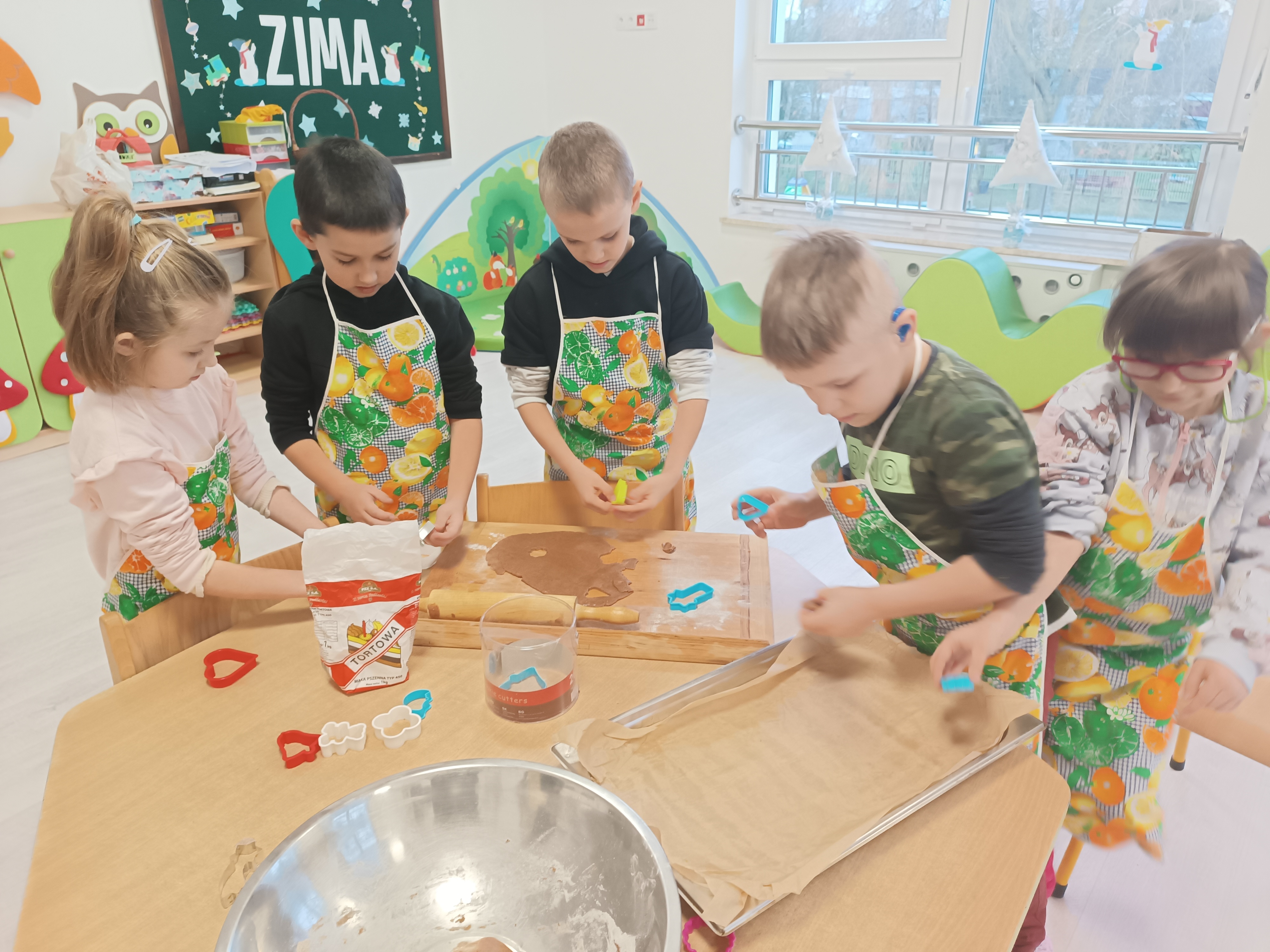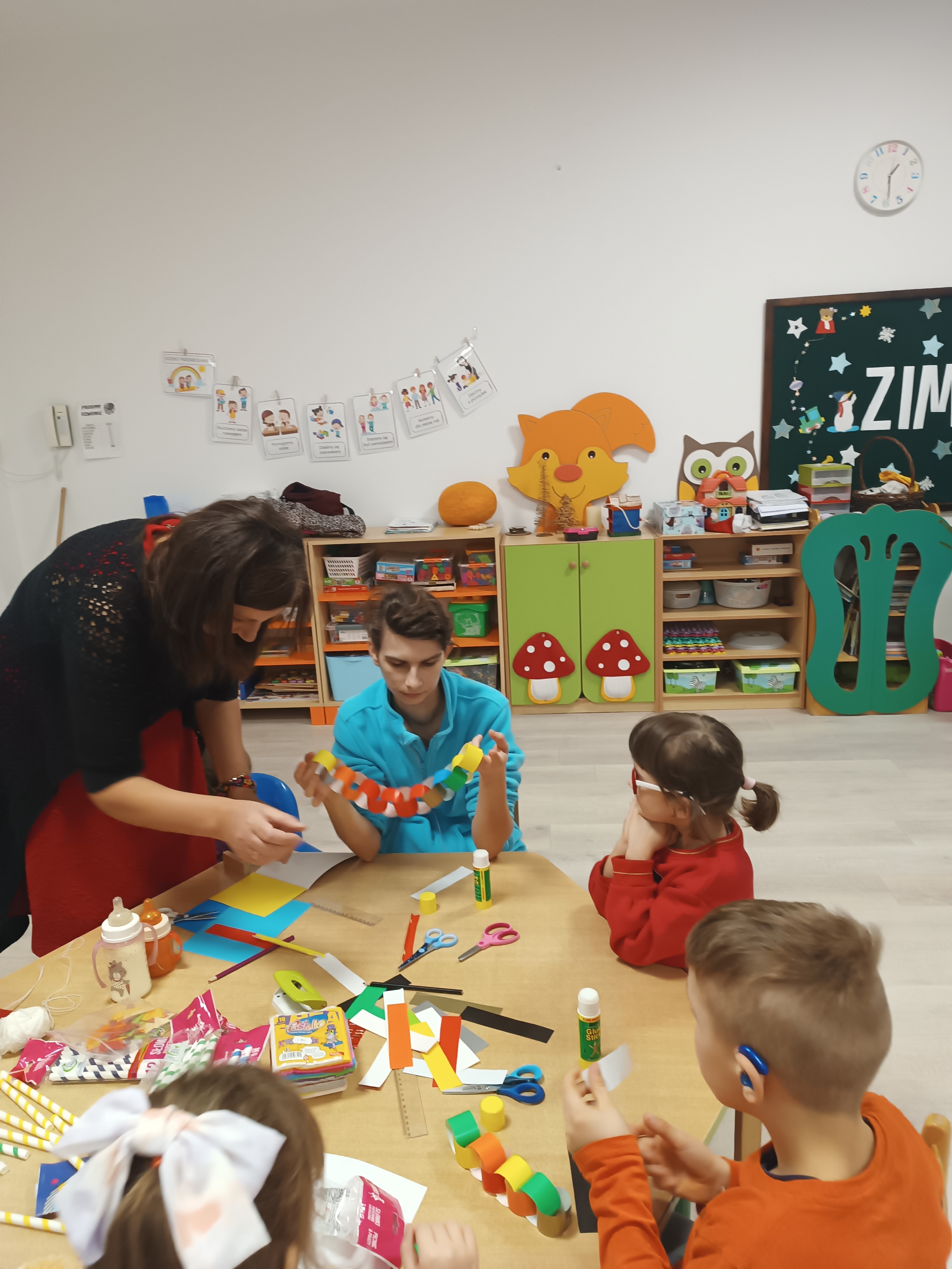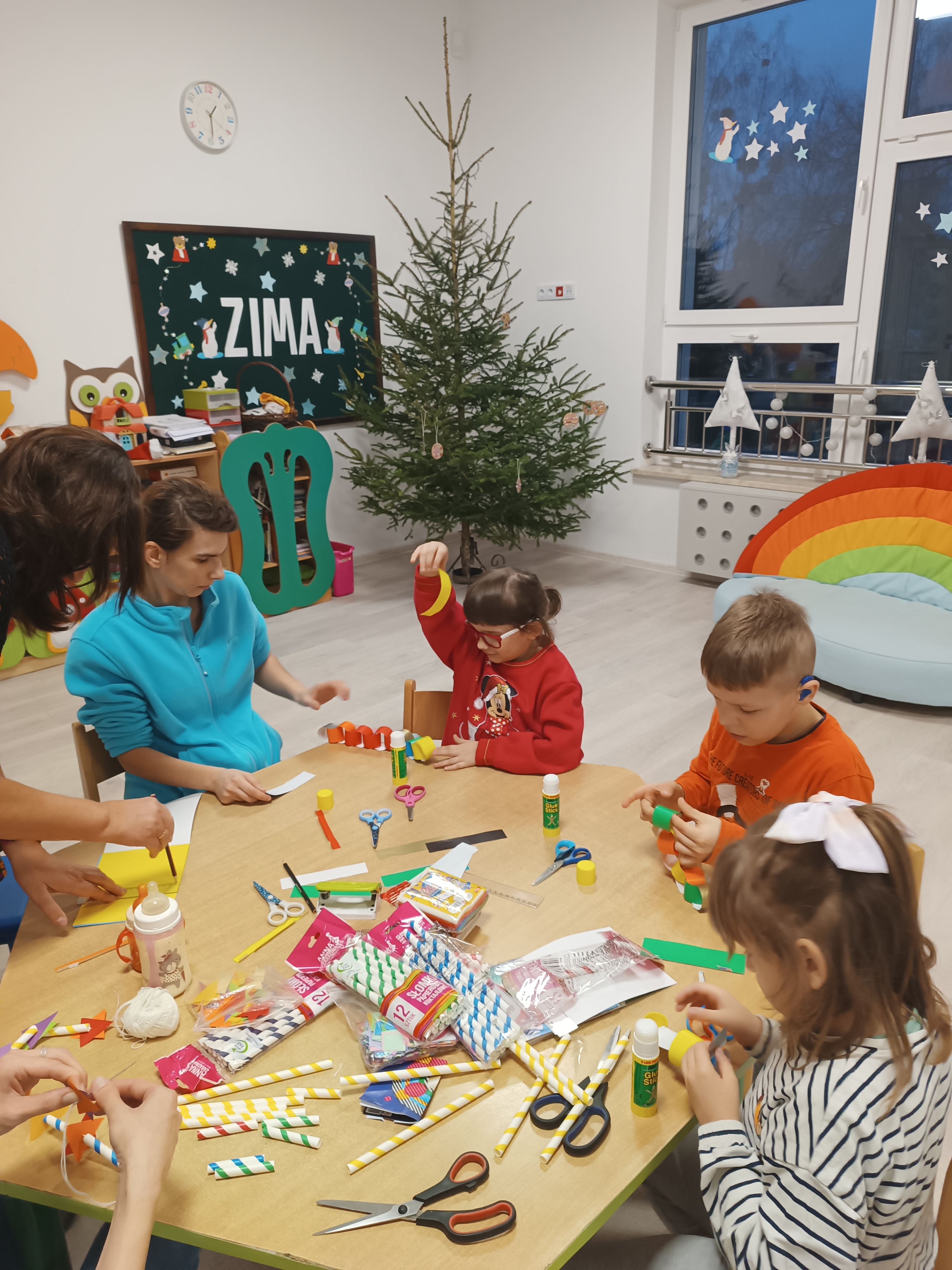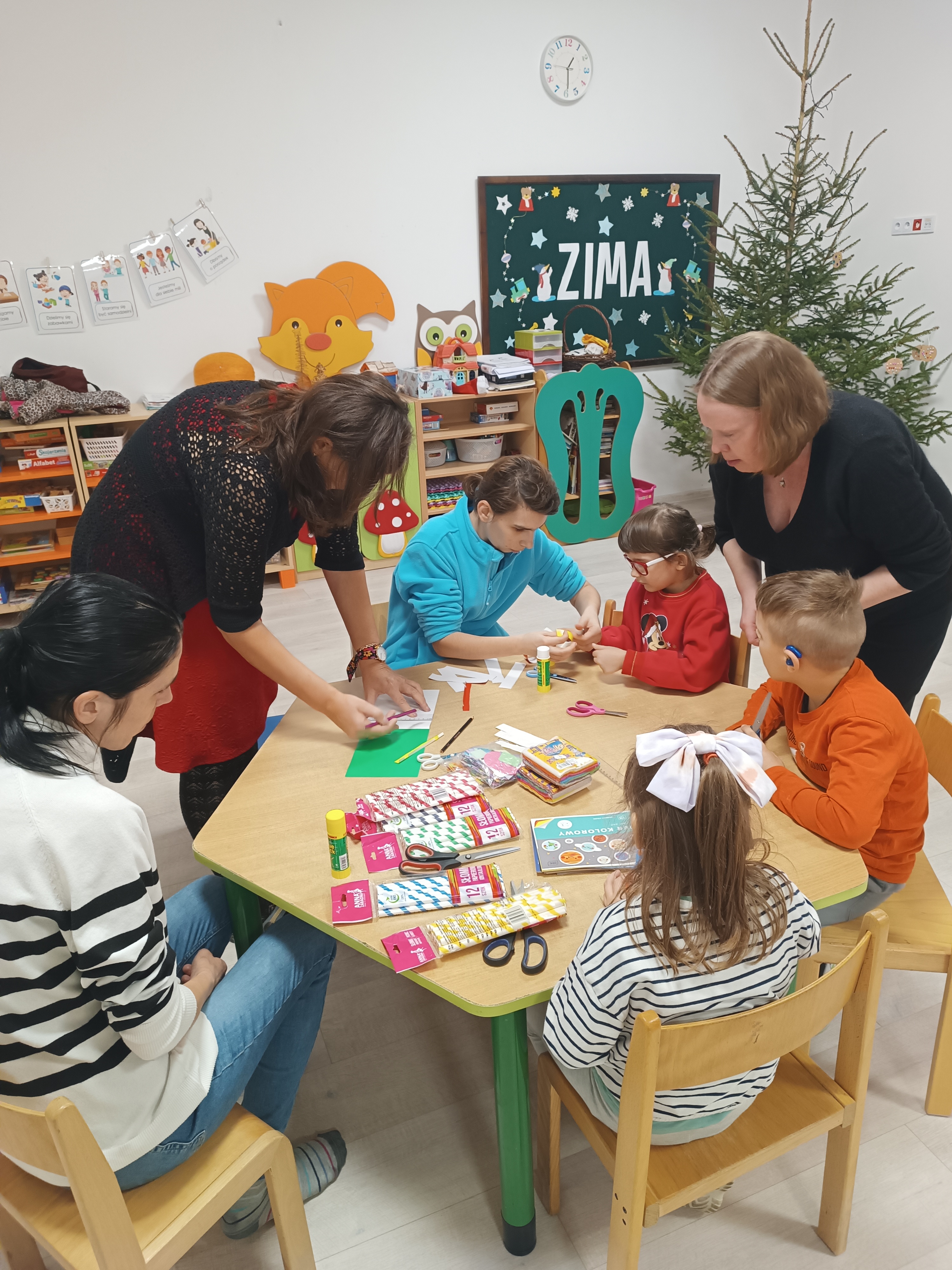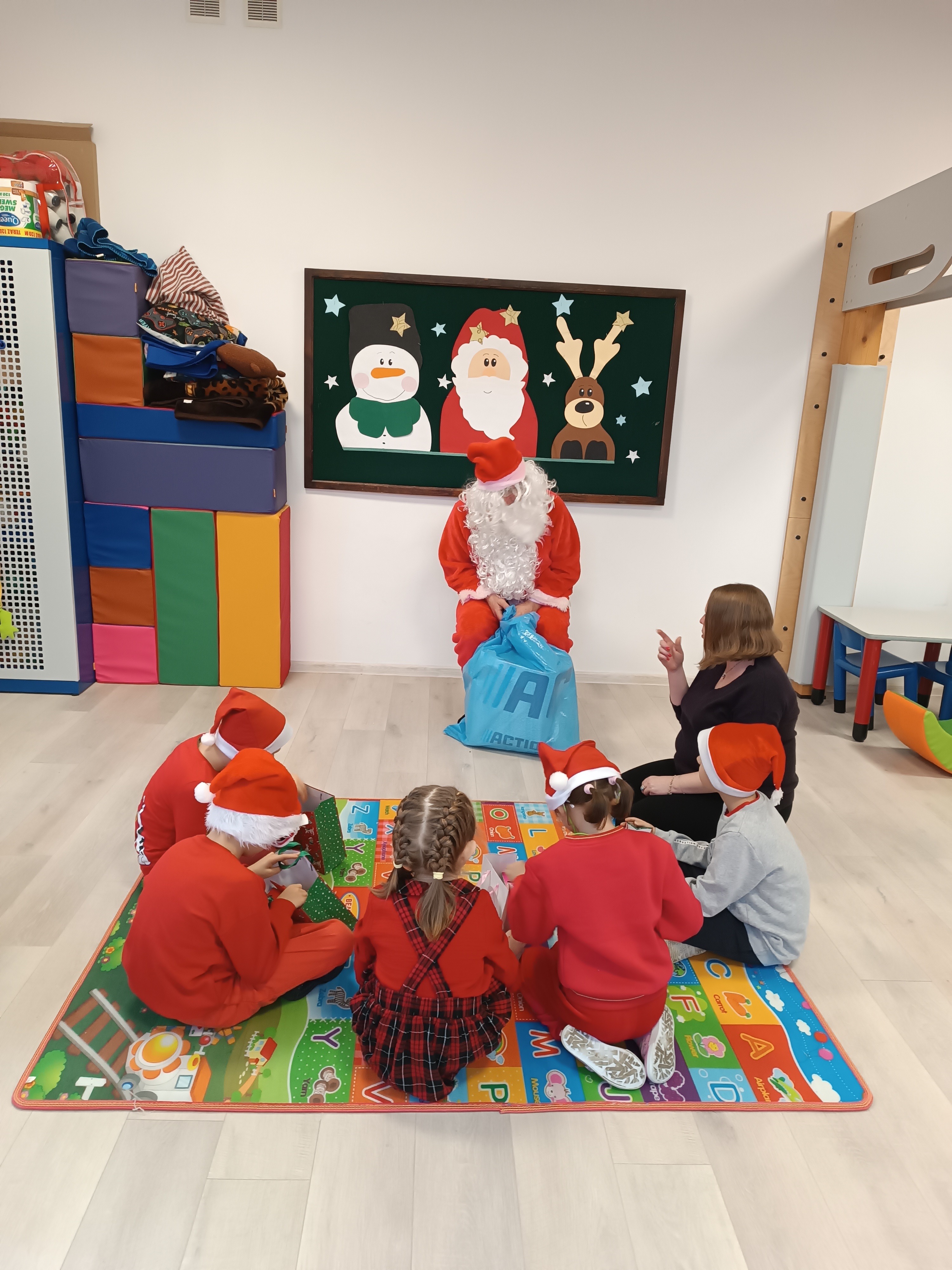 Świąteczny czas, to czas szczególny, kiedy to stajemy się wyjątkową przedszkolną rodziną. Salę ozdabiają piękne, zimowe dekoracje. Po całym przedszkolu unosił się zapach piernikowych ciasteczek. Odwiedził nas Mikołaj i każde dziecko otrzymało wyczekiwany prezent. Razem z Rodzicami wesoło bawiliśmy się w zabawy o tematyce zimowej i ubieraliśmy choinkę w kolorowe tradycyjne łańcuchy. Przegryzaliśmy pierniki i śpiewaliśmy kolędy... Nasze serca wypełniły miłość i radość!