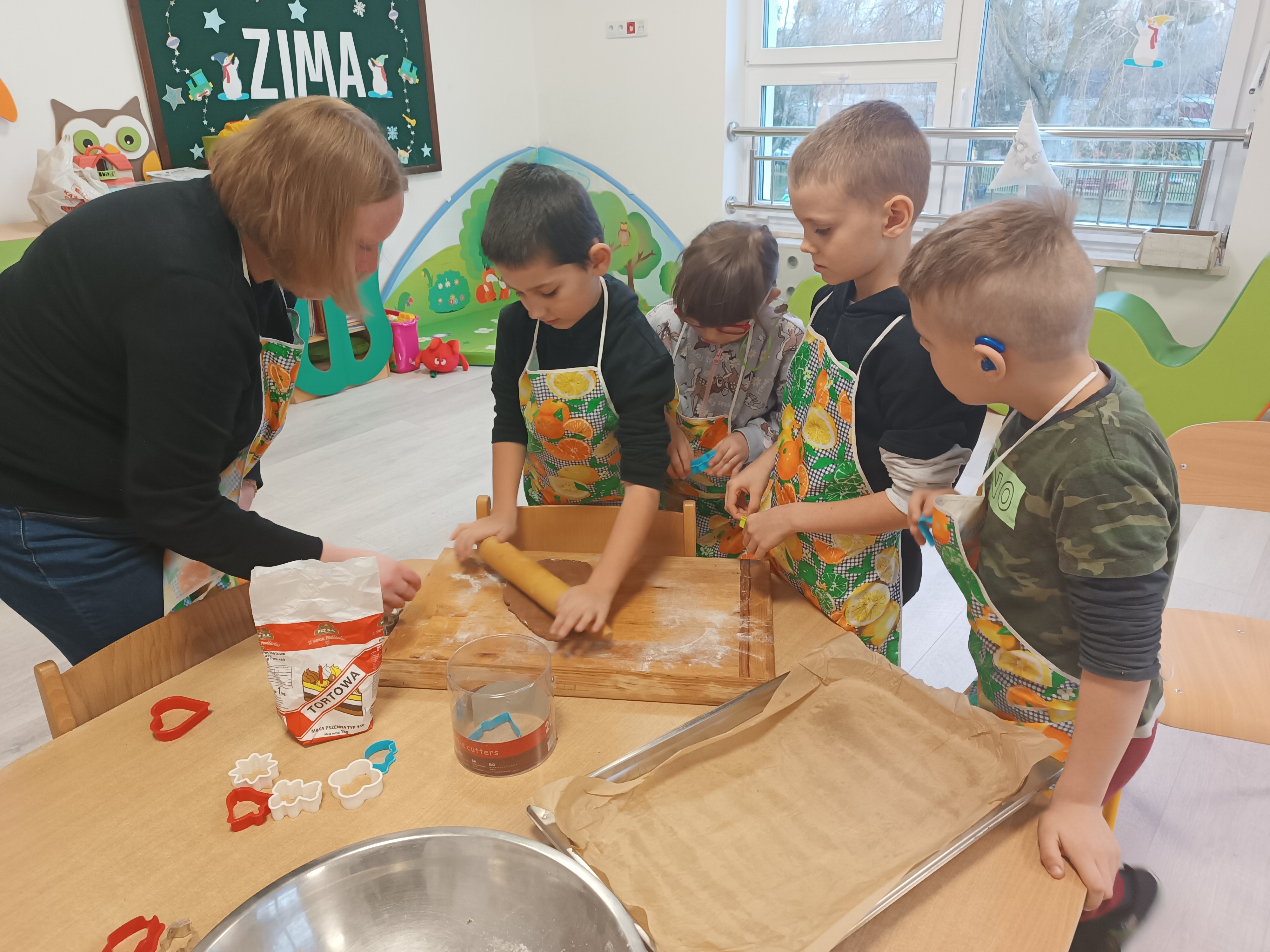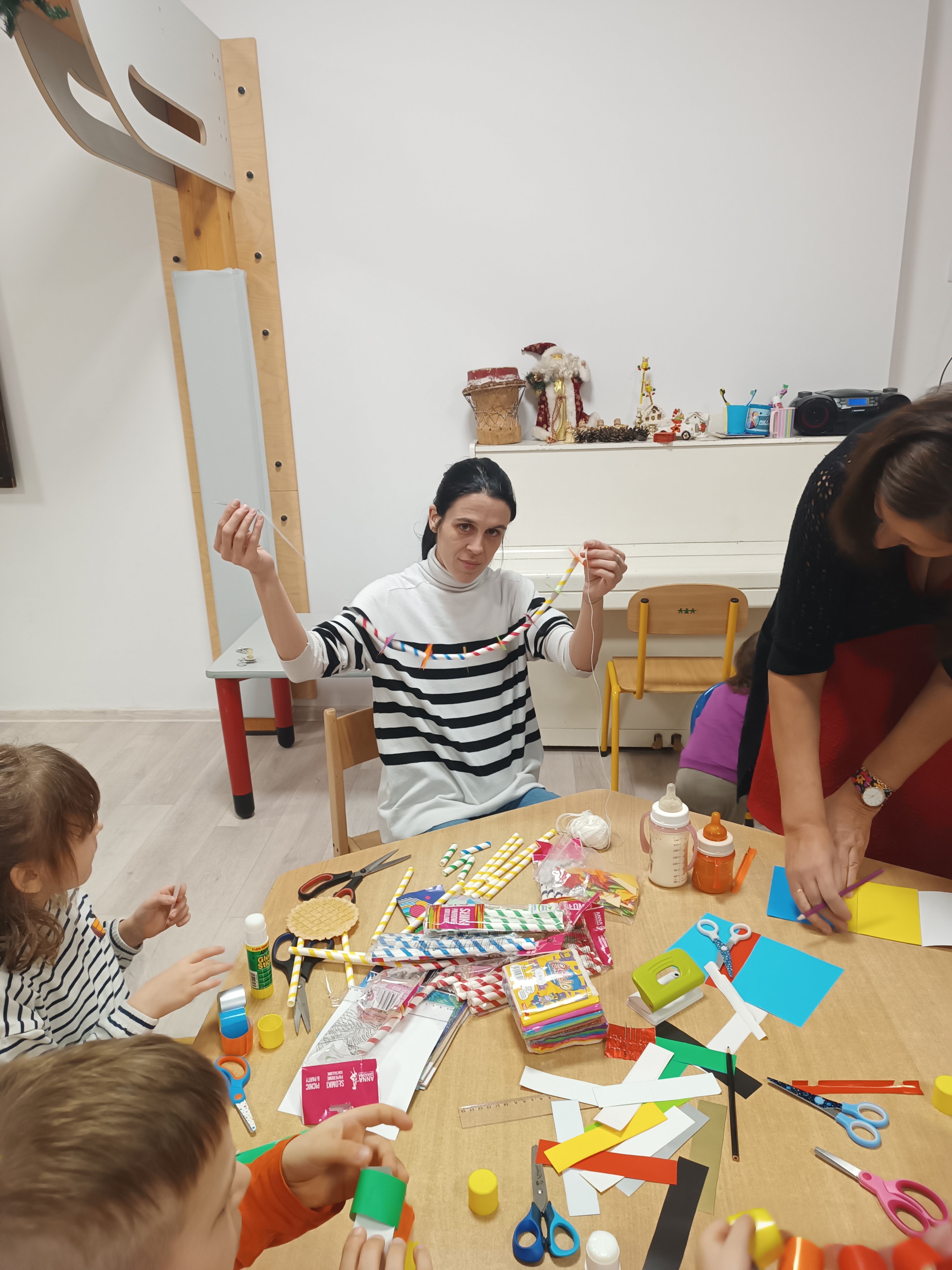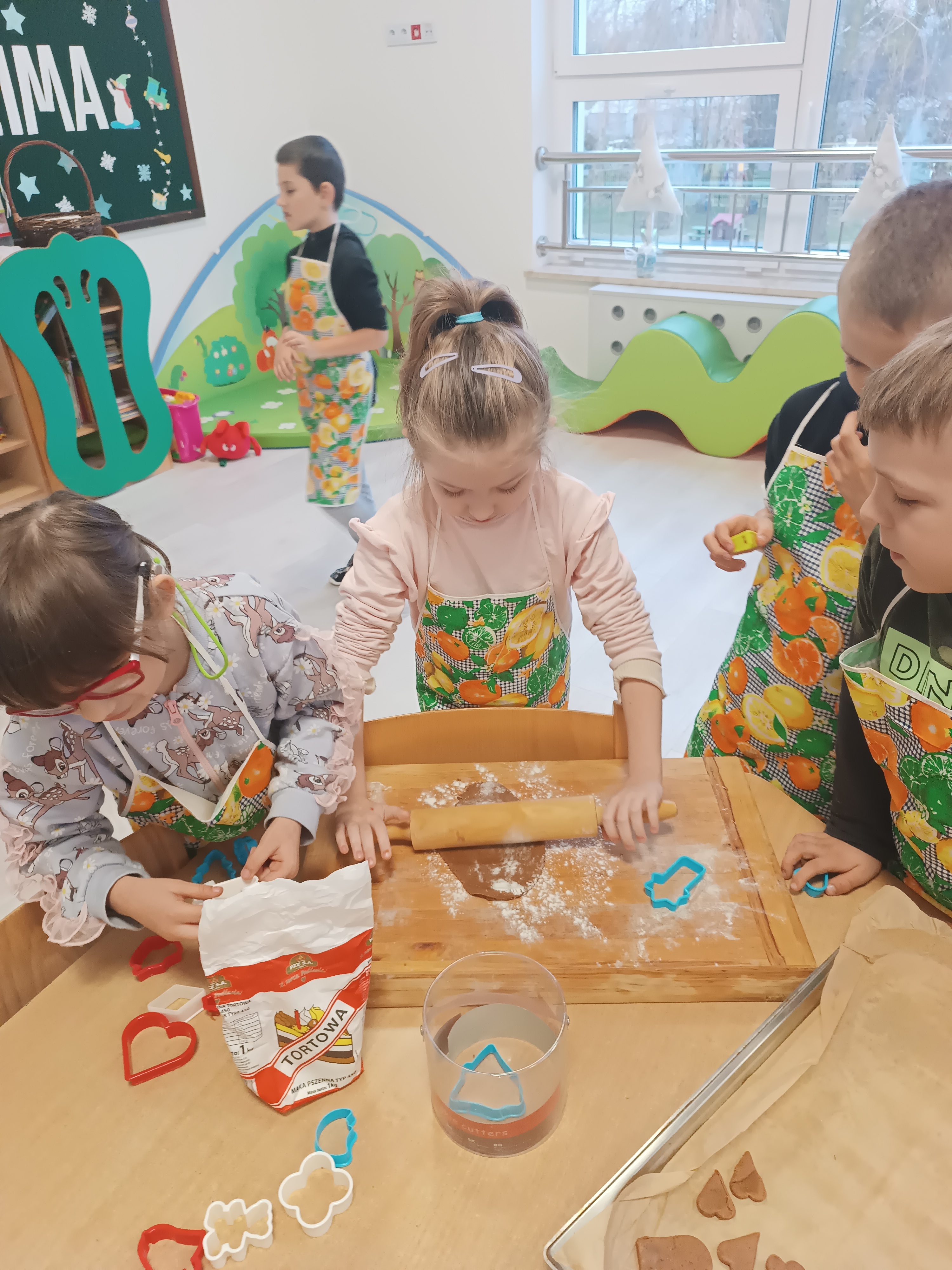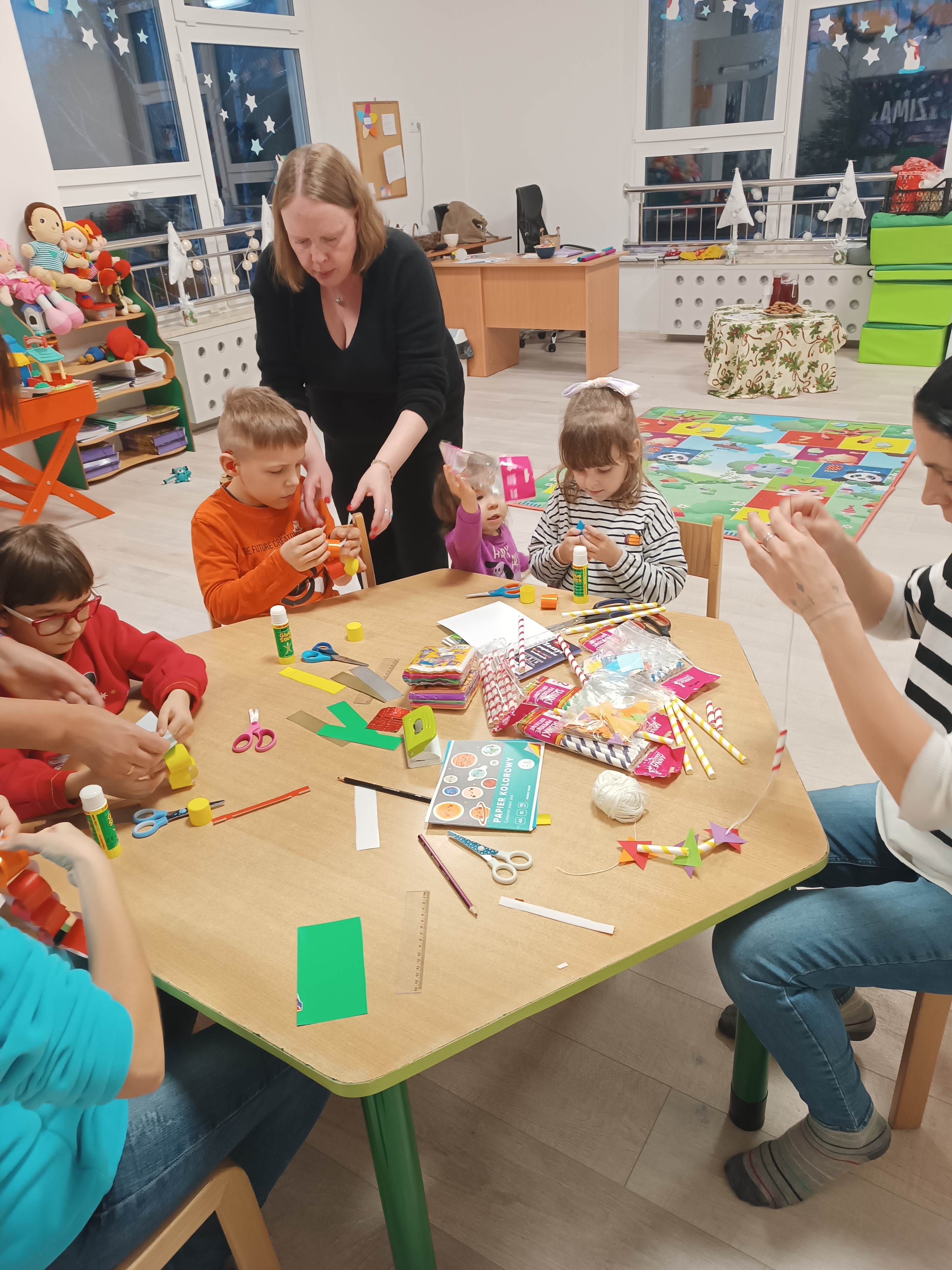 Zdjęcia przedstawiają dzieci z grupy „Rysie”podczas działań o tematyce świąteczno- zimowej.
