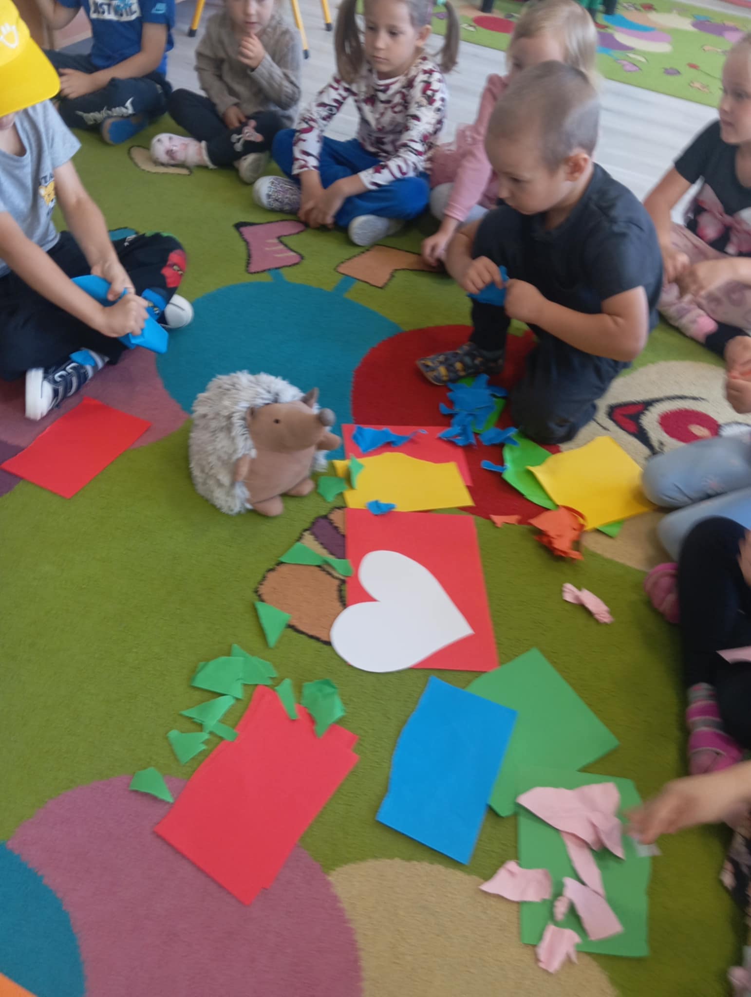 Wszystkie grupy brały udział w zajęciach , które pomogły rozwijać wrażliwość i empatię oraz nazywać i wyrażać emocje. Wspólnie z Jeżykiem Roro szukaliśmy sposobów na rozwiązywanie sporów i tworzyliśmy przyjazną atmosferę. Wiele radości dały przedszkolakom ćwiczenia związane z wyrażaniem emocji. Takie działania pokazały , że dzieci potrafią ze sobą świetnie współpracować, wspierać się nawzajem oraz czerpać radość z bycia razem. Zachęcamy rodziców do rozmów w domu o sile przyjaźni i wzajemnej pomocy.