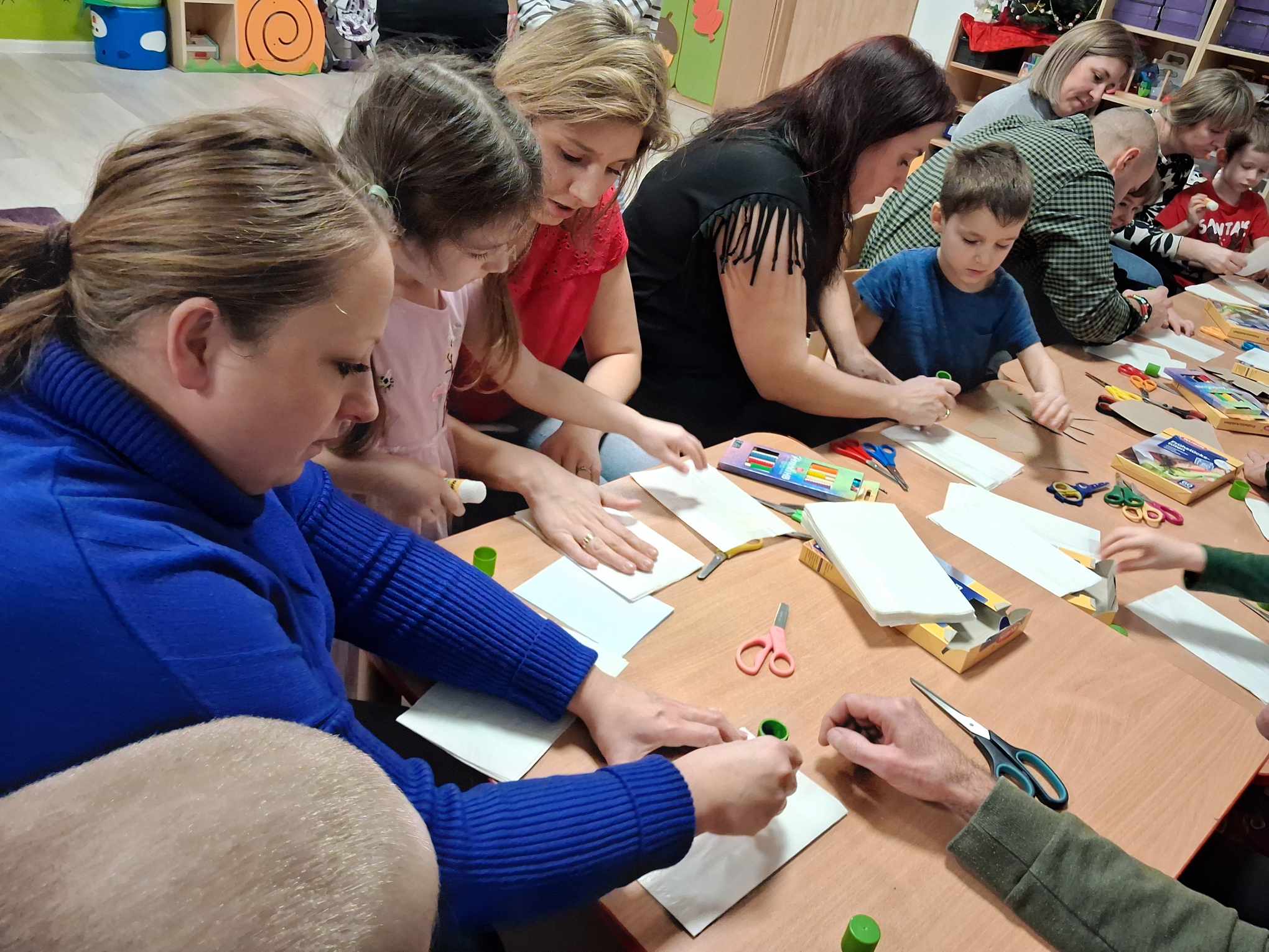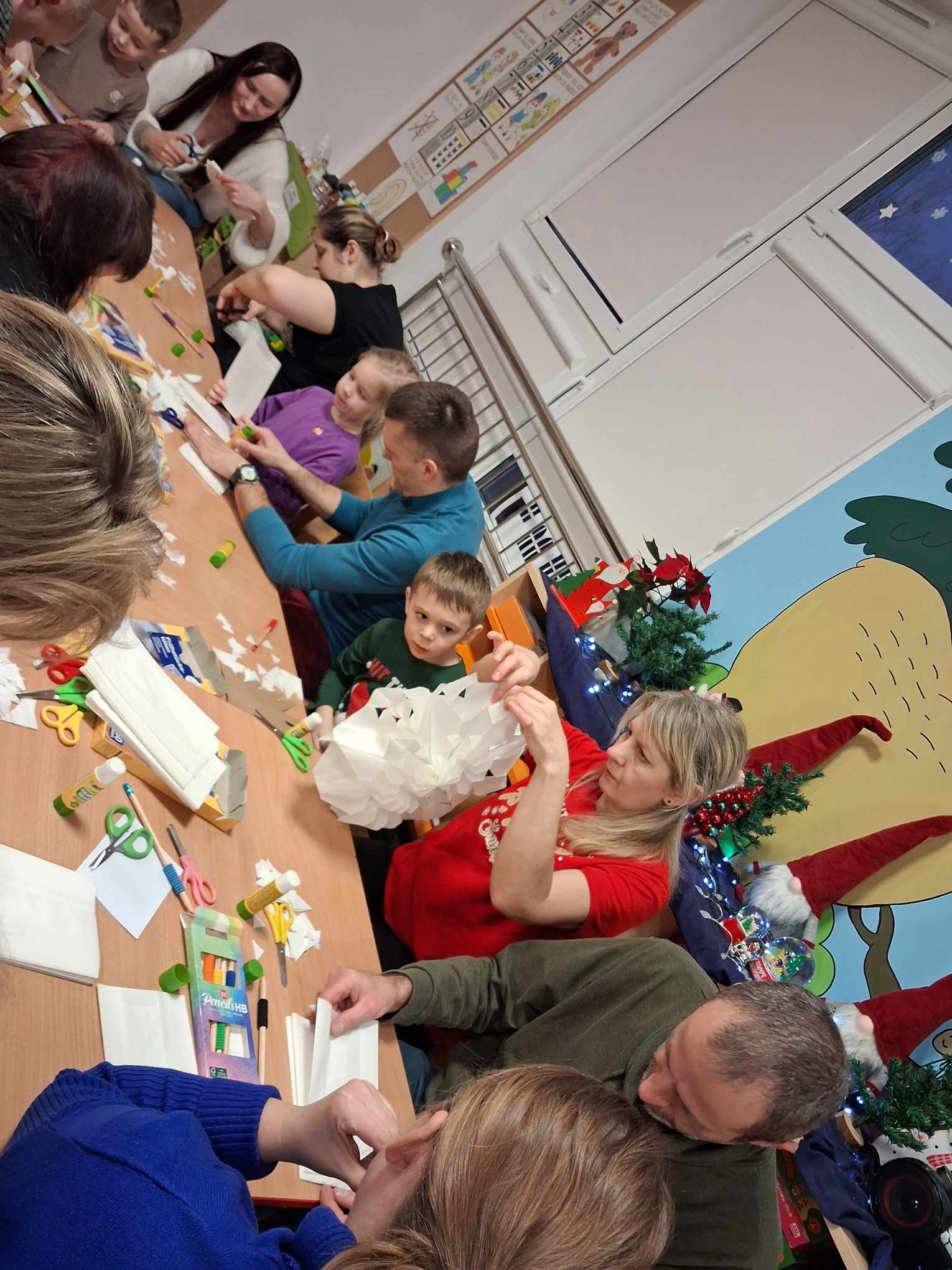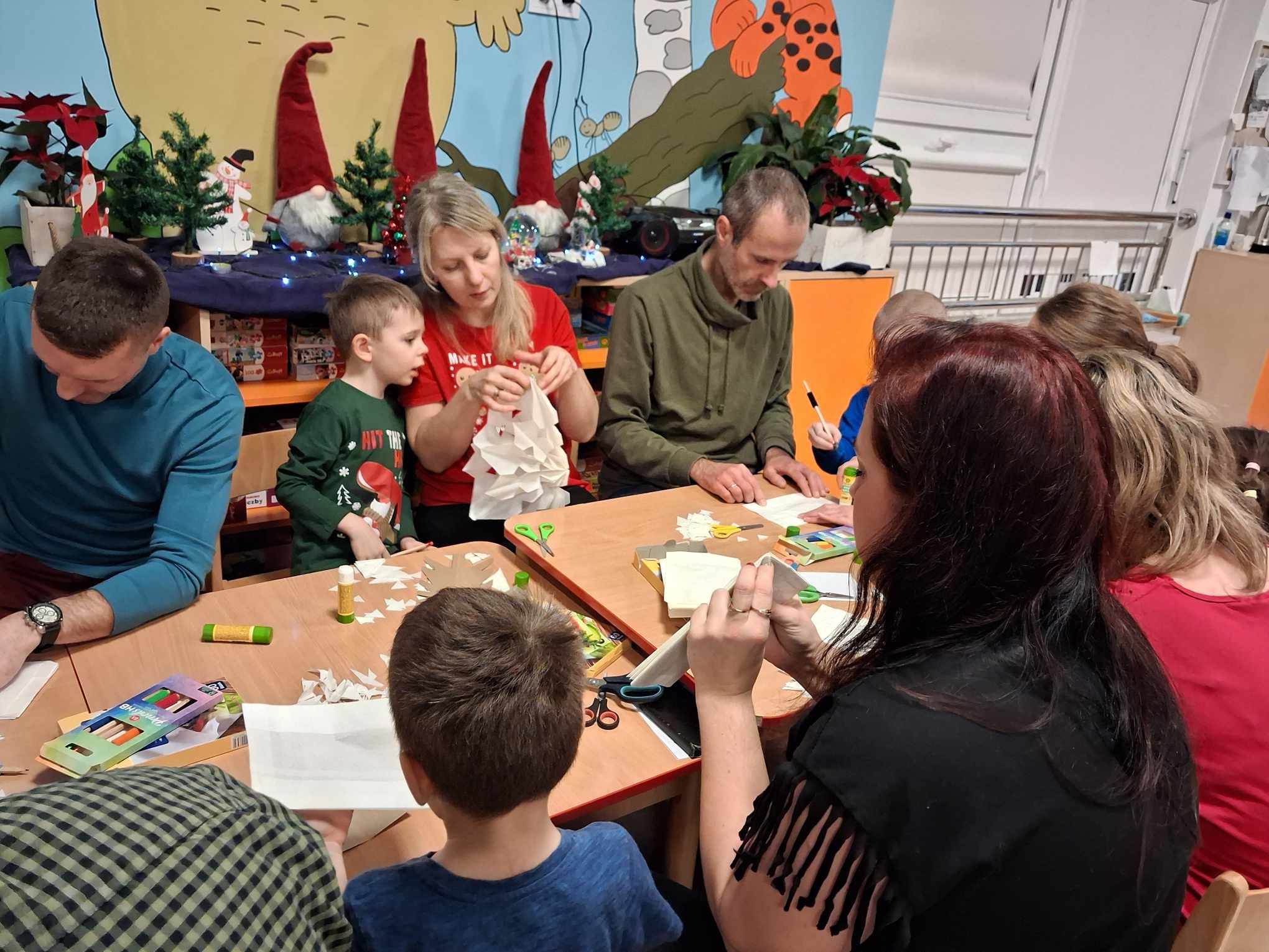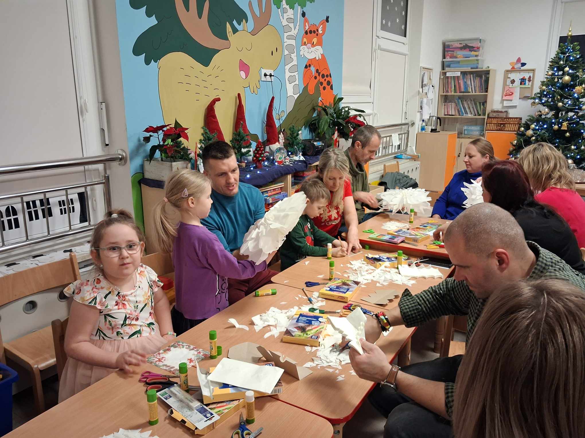 Dnia 20 grudnia br. grupa Liski zorganizowała świąteczne warsztaty wraz z rodzicami. Wprowadzając w nastrój świąteczny dzieci przywitały rodziców pięknie zaśpiewanymi kolędami. Następnie wspólnie wykonali gwiazdy z papieru, które miały ozdobić okna Domu Miłosierdzia "Samarytanin" w Hajnówce. Warsztaty miały na celu integrację rodziców z dziećmi oraz środowiska rodzinnego i przedszkolnego. Na zakończenie wszyscy spróbowali słodkich wypieków oraz soczystych owoców przygotowanych przez rodziców.