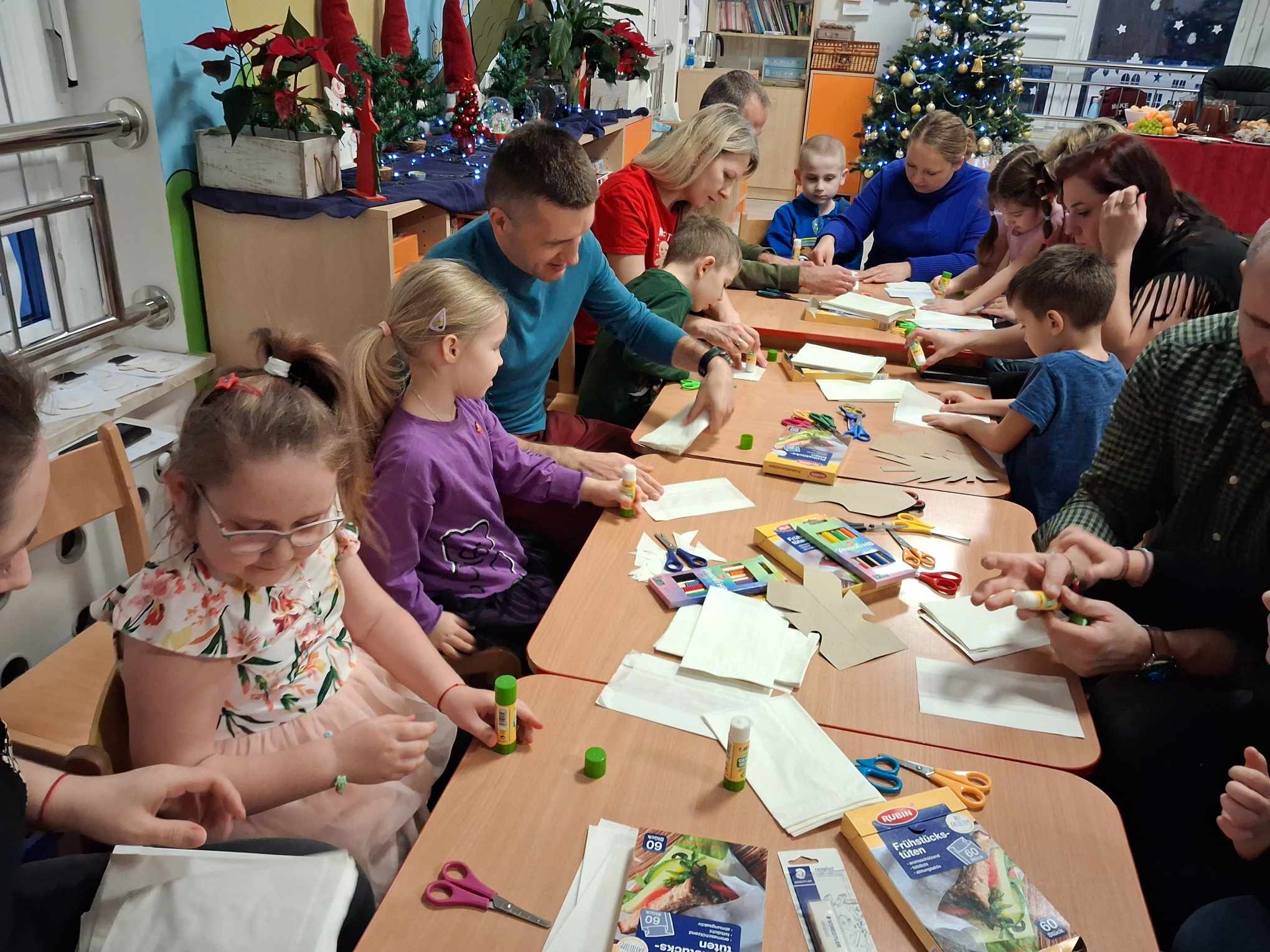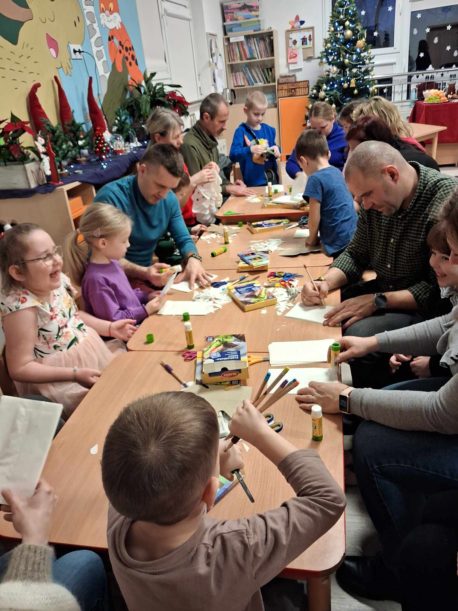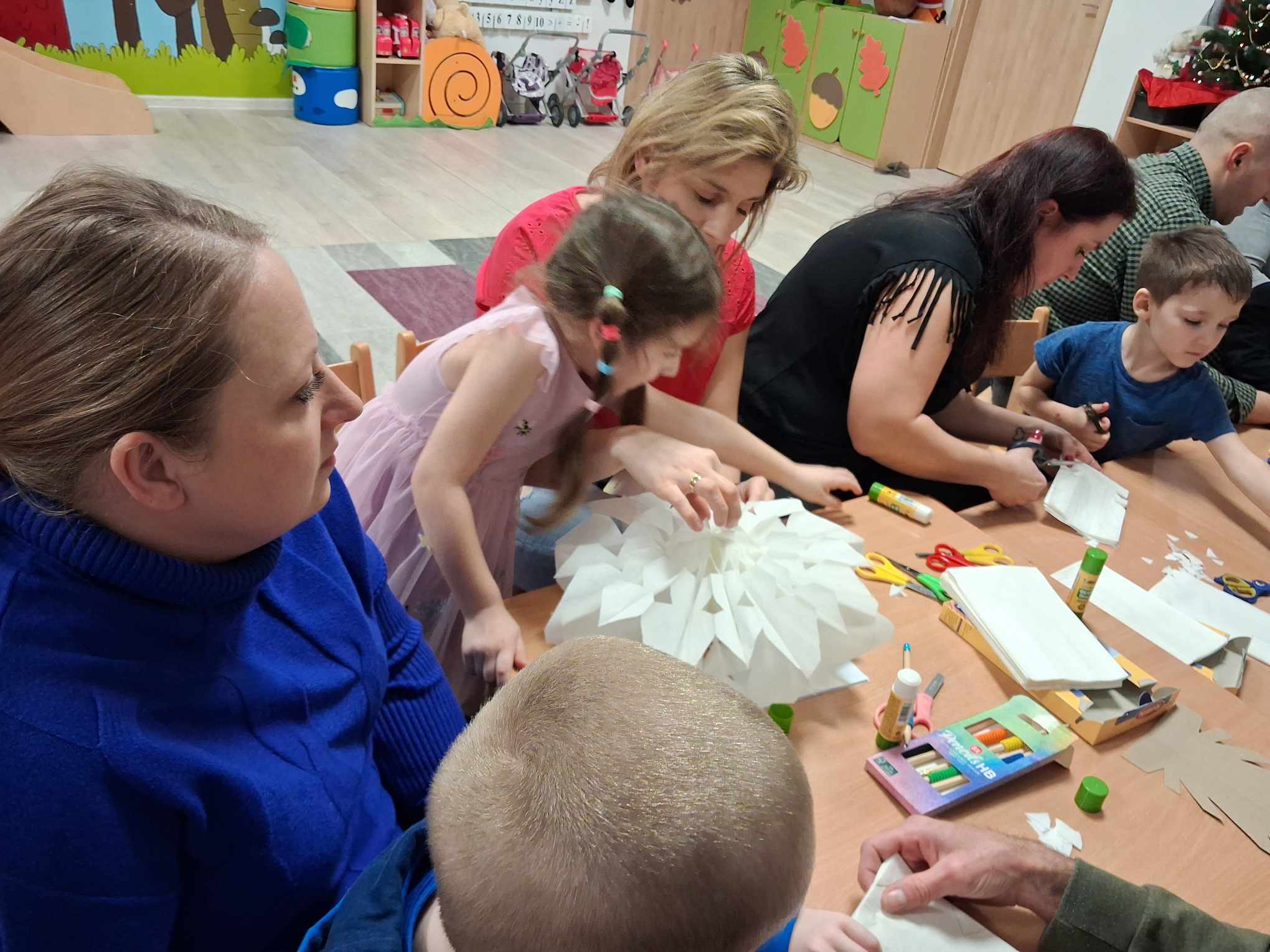 Dnia 20 grudnia br. grupa Liski zorganizowała świąteczne warsztaty wraz z rodzicami. Wprowadzając w nastrój świąteczny dzieci przywitały rodziców pięknie zaśpiewanymi kolędami. Następnie wspólnie wykonali gwiazdy z papieru, które miały ozdobić okna Domu Miłosierdzia "Samarytanin" w Hajnówce. Warsztaty miały na celu integrację rodziców z dziećmi oraz środowiska rodzinnego i przedszkolnego. Na zakończenie wszyscy spróbowali słodkich wypieków oraz soczystych owoców przygotowanych przez rodziców.