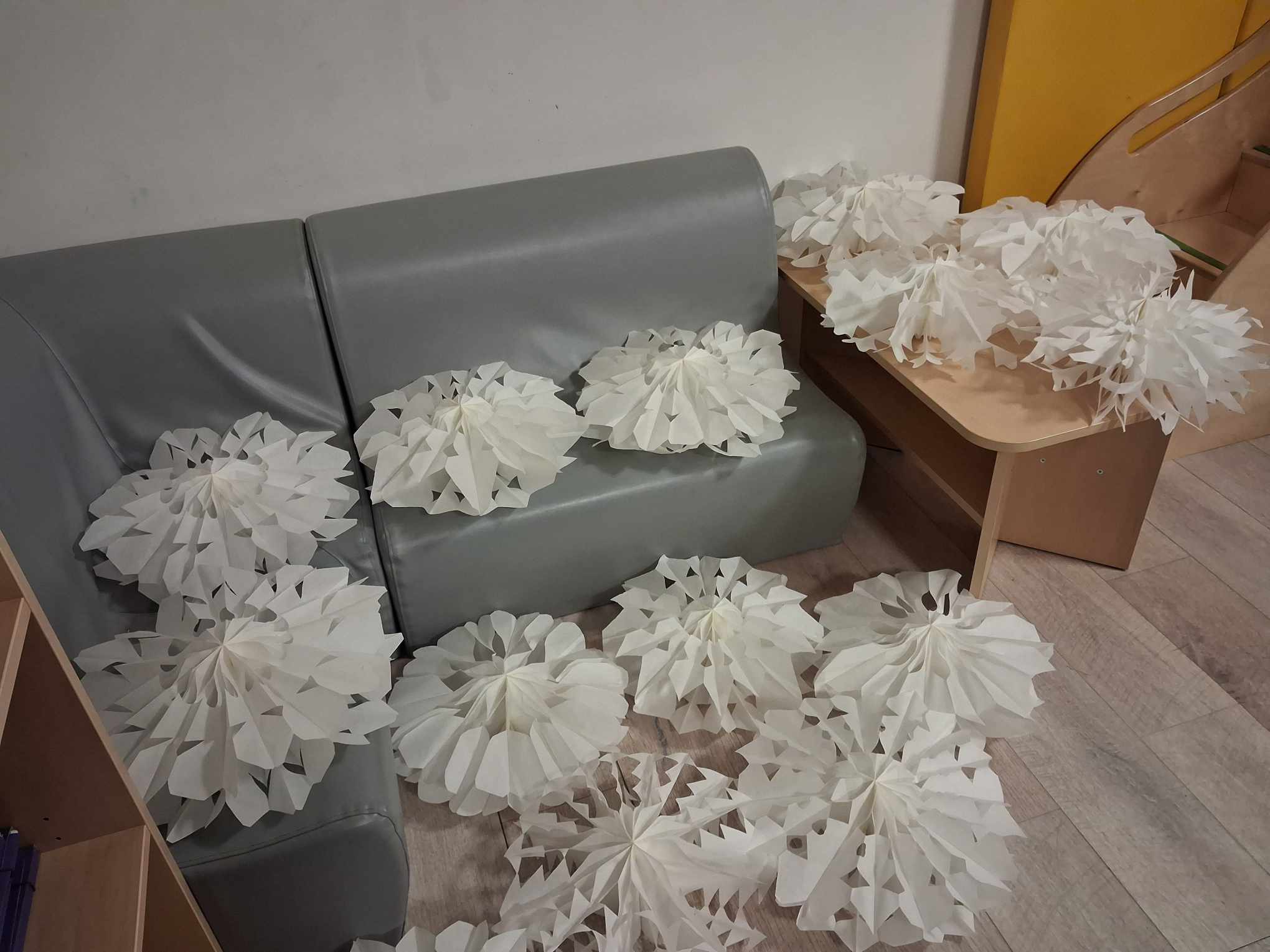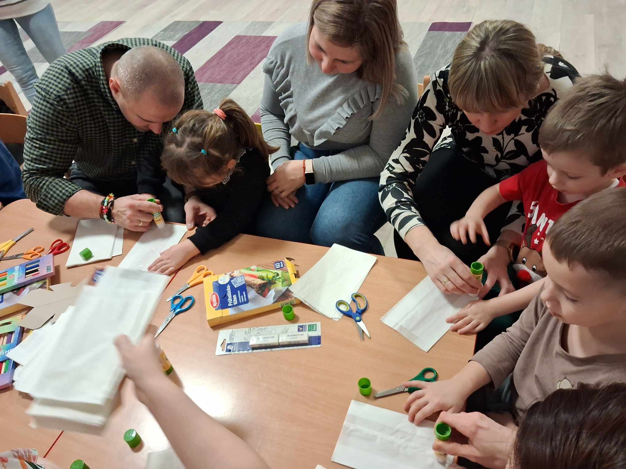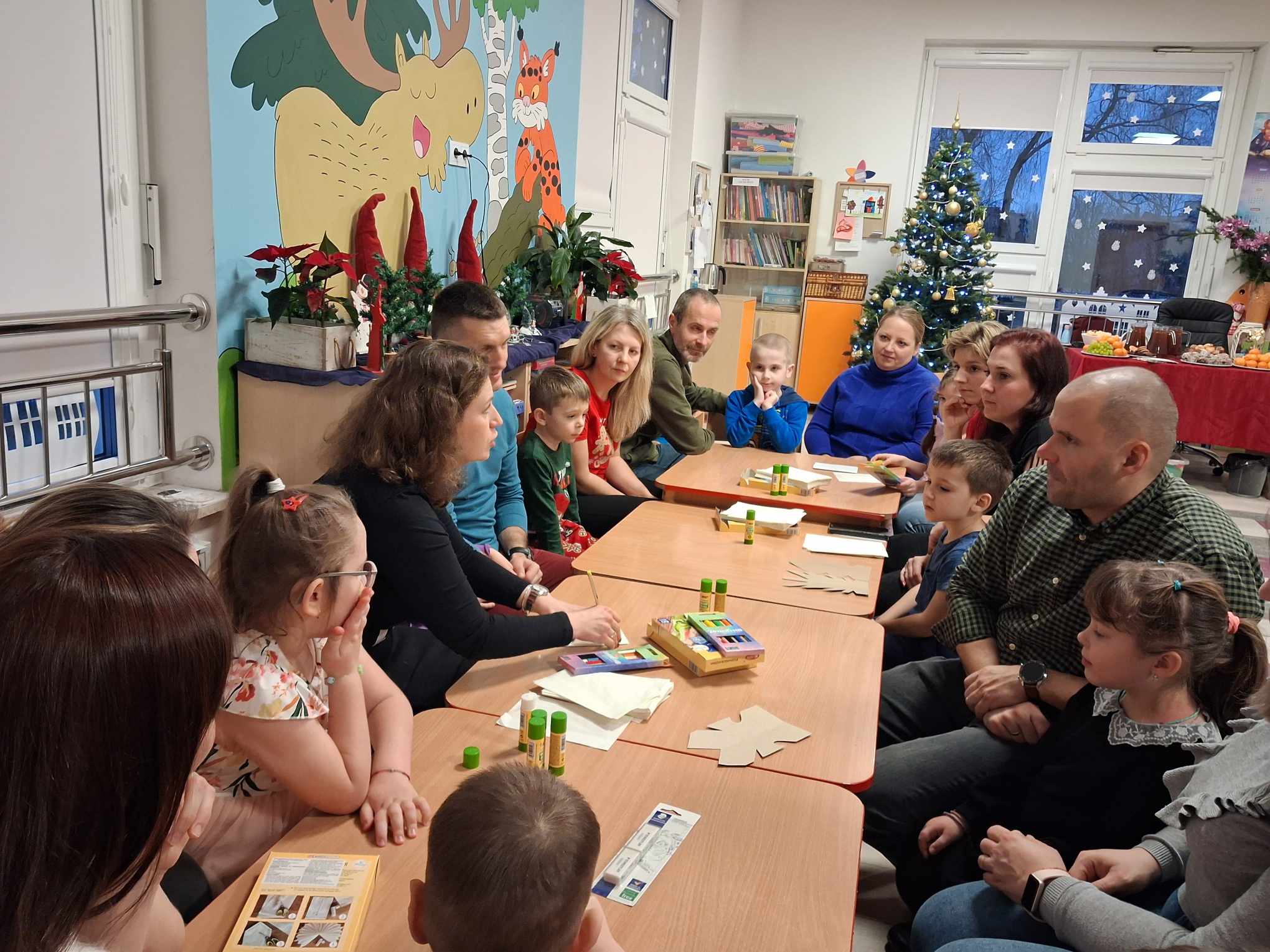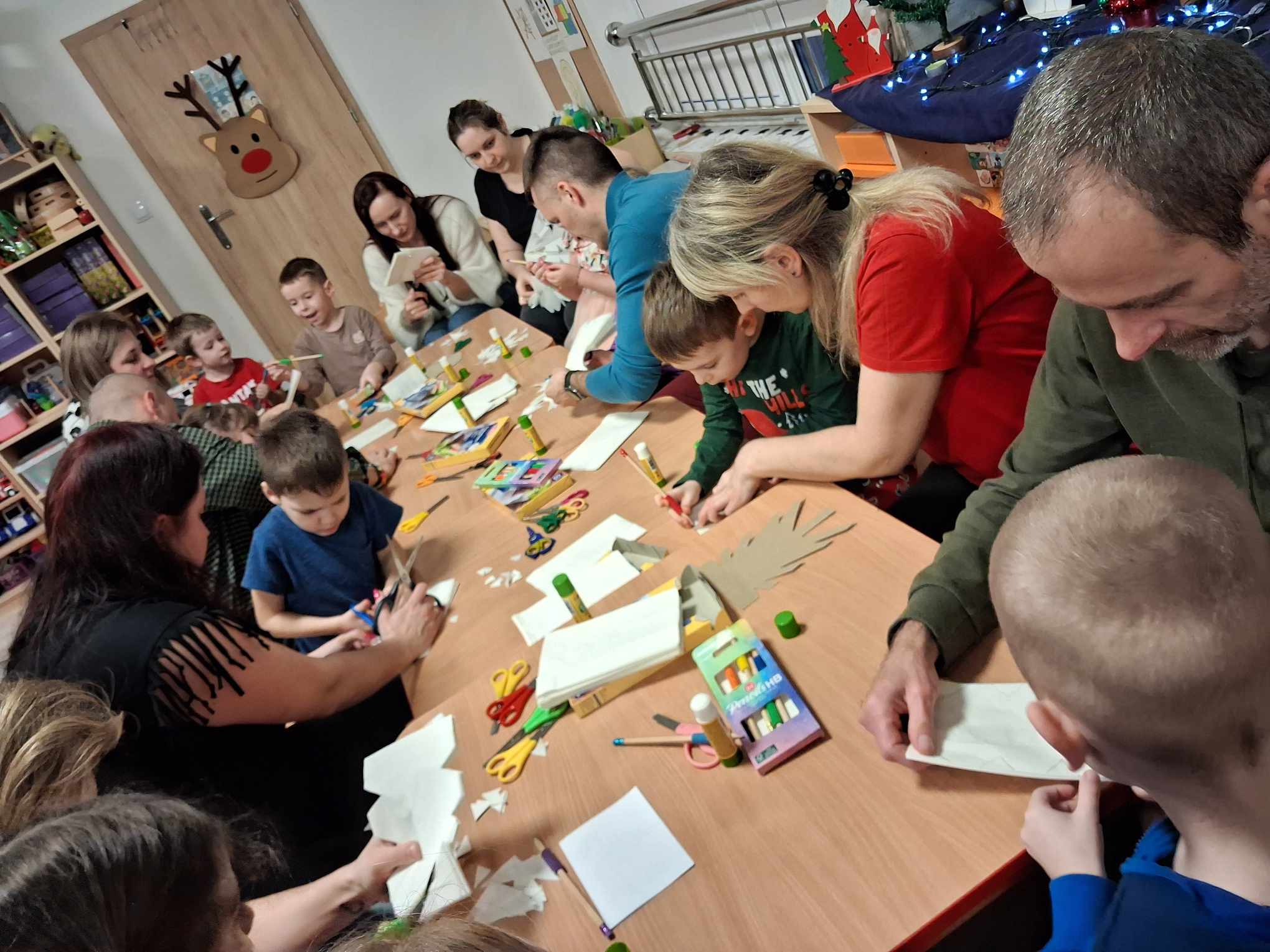Dnia 20 grudnia br. grupa Liski zorganizowała świąteczne warsztaty wraz z rodzicami. Wprowadzając w nastrój świąteczny dzieci przywitały rodziców pięknie zaśpiewanymi kolędami. Następnie wspólnie wykonali gwiazdy z papieru, które miały ozdobić okna Domu Miłosierdzia "Samarytanin" w Hajnówce. Warsztaty miały na celu integrację rodziców z dziećmi oraz środowiska rodzinnego i przedszkolnego. Na zakończenie wszyscy spróbowali słodkich wypieków oraz soczystych owoców przygotowanych przez rodziców.
