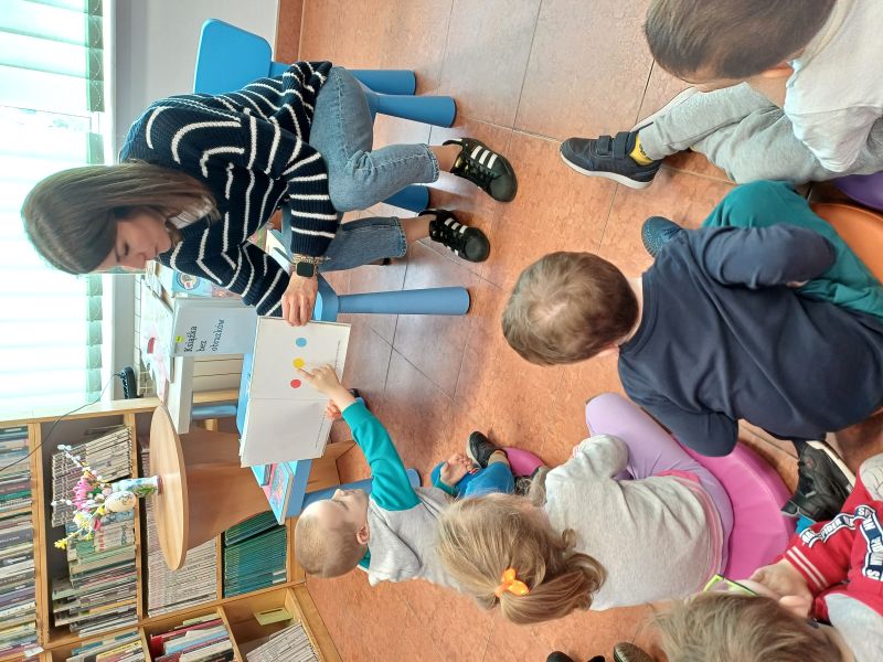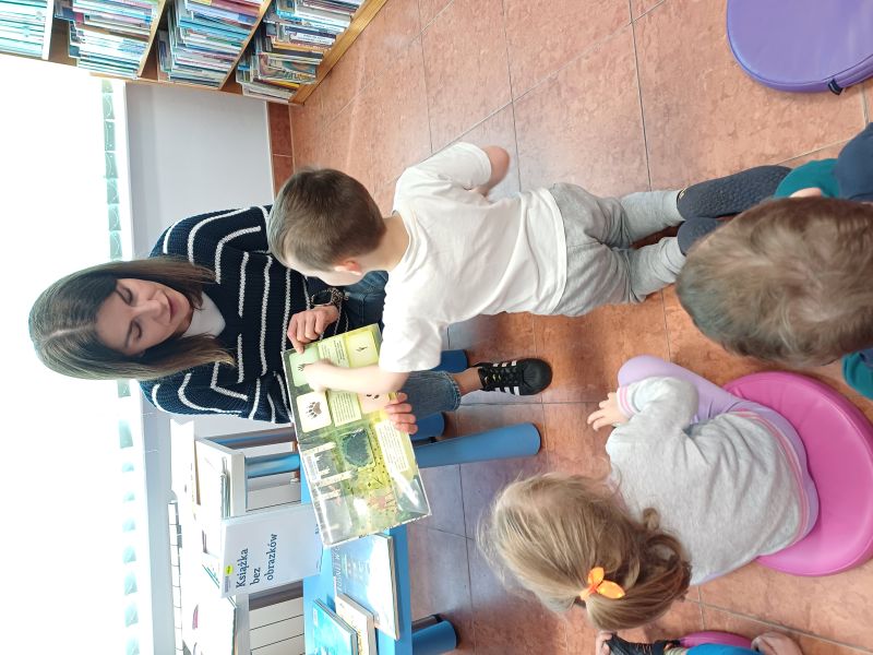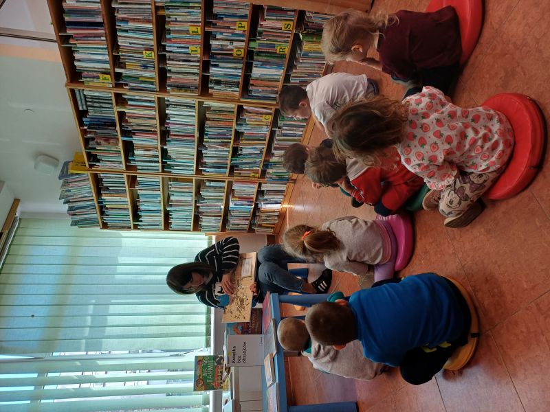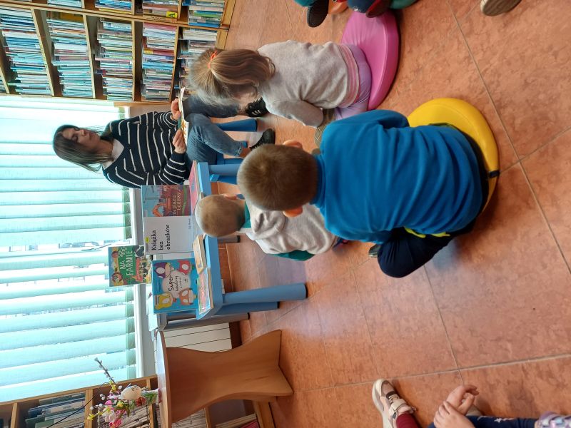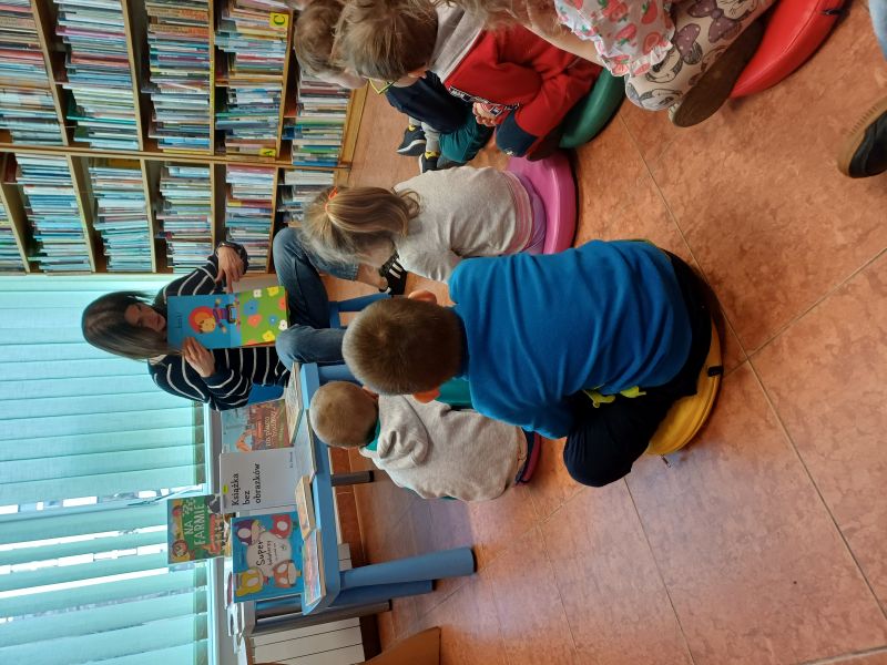 Podczas wizyty w bibliotece, przedszkolaki miały okazję poznać to ciekawe miejsce – dowiedziały się, jak wygląda biblioteka, jak funkcjonuje, a także w jaki sposób można z niej korzystać. Panie bibliotekarki wprowadziły dzieci w świat książek, opowiadając o pracy w tym miejscu i o tym, jak dbać o książki.