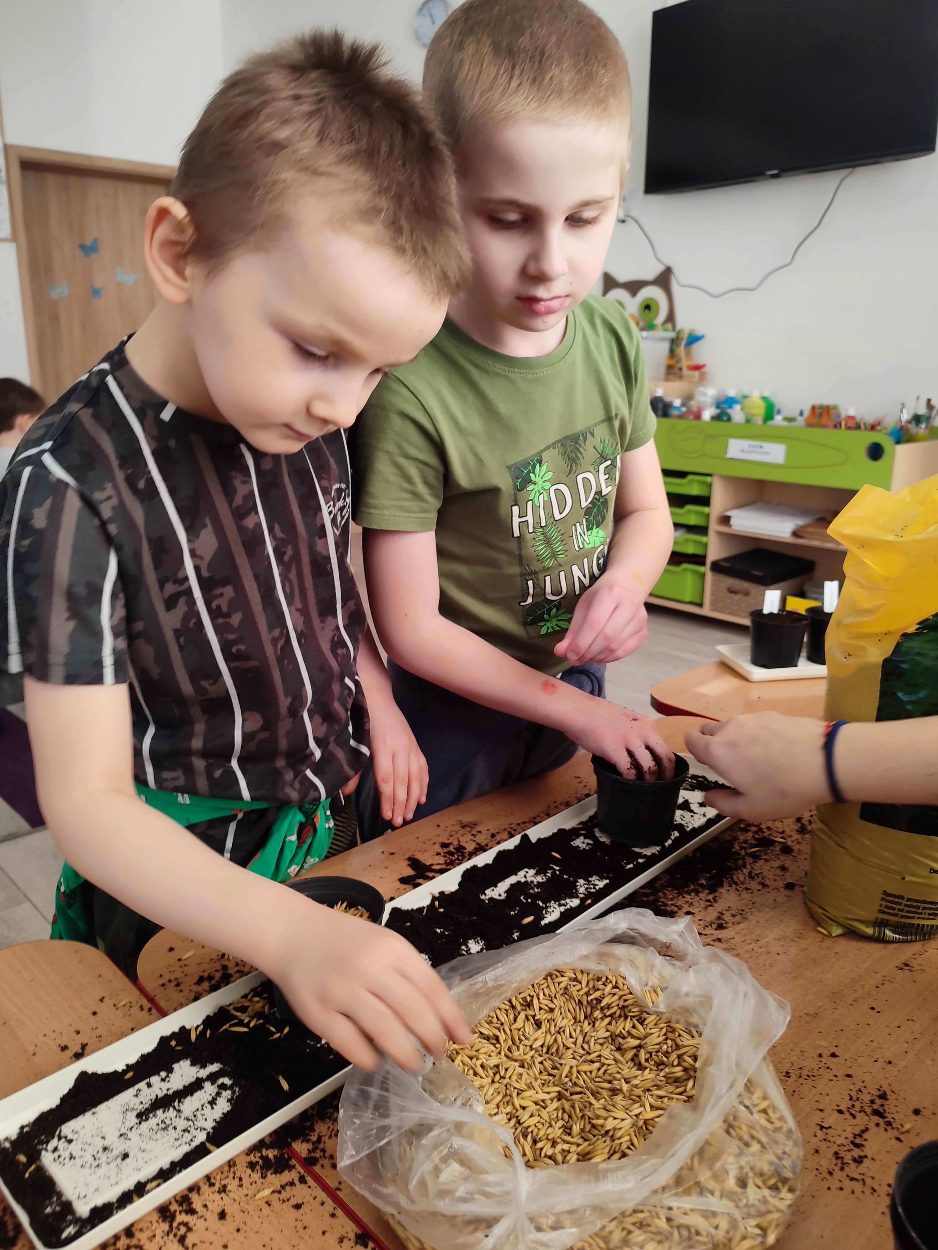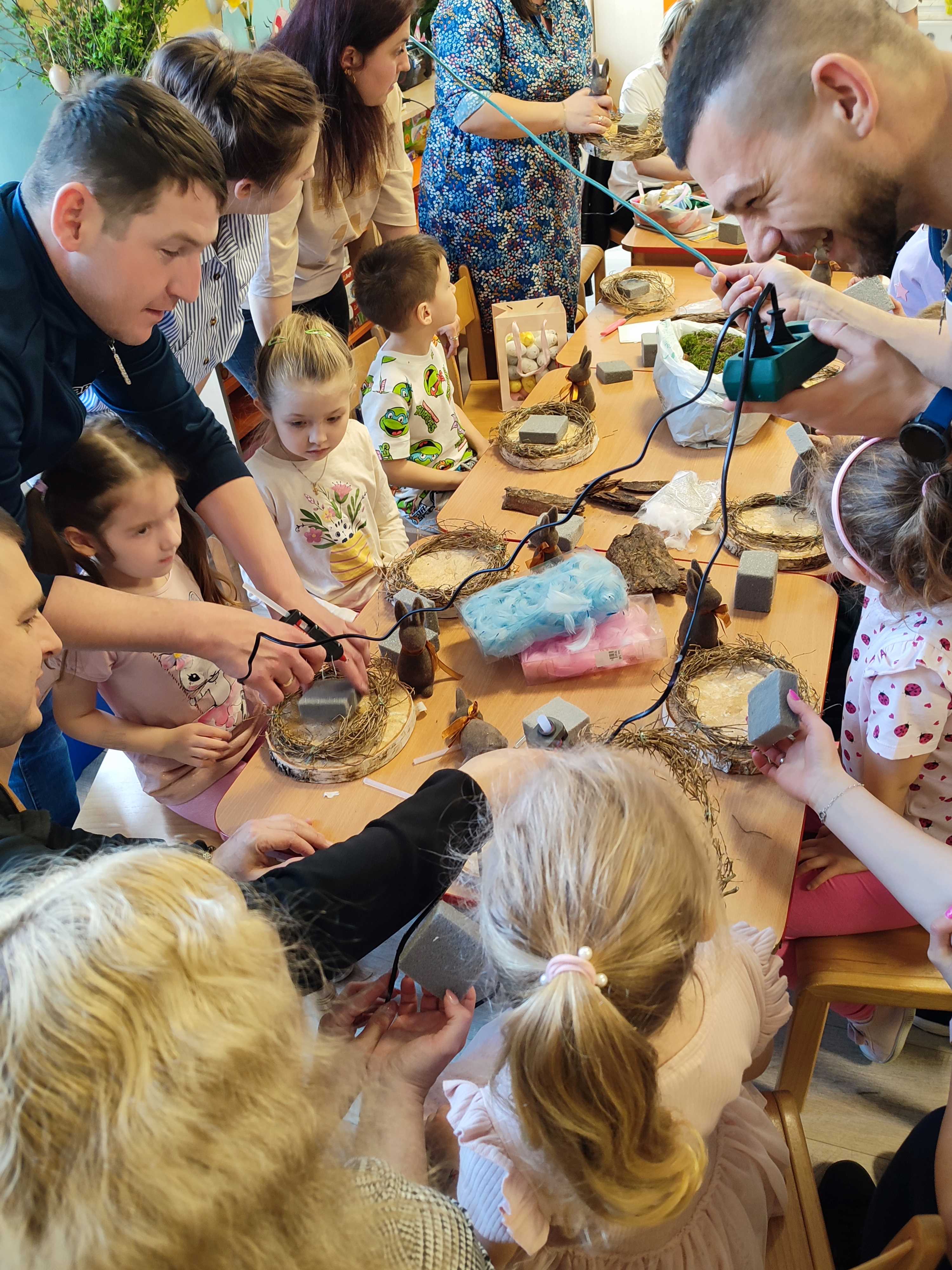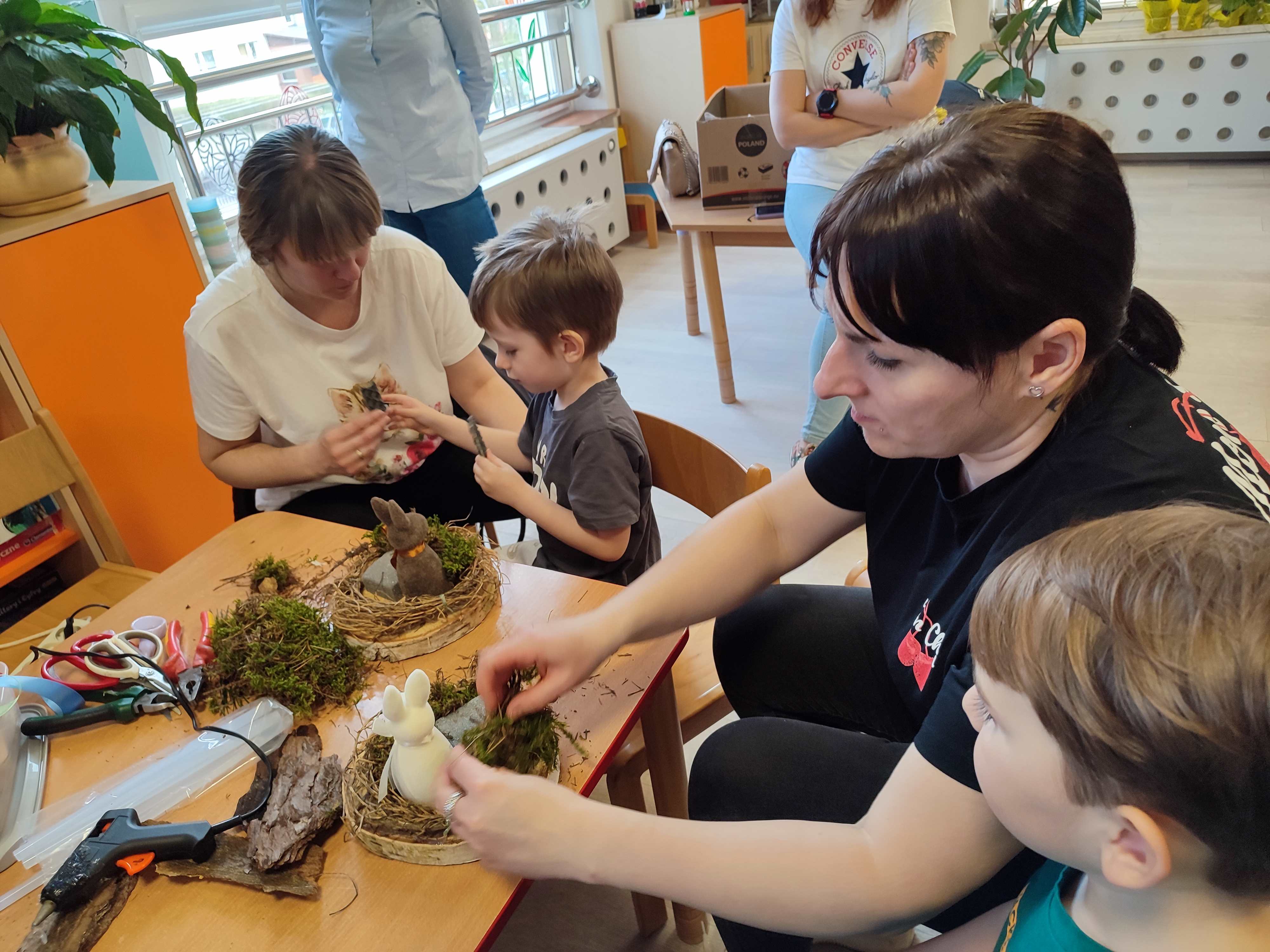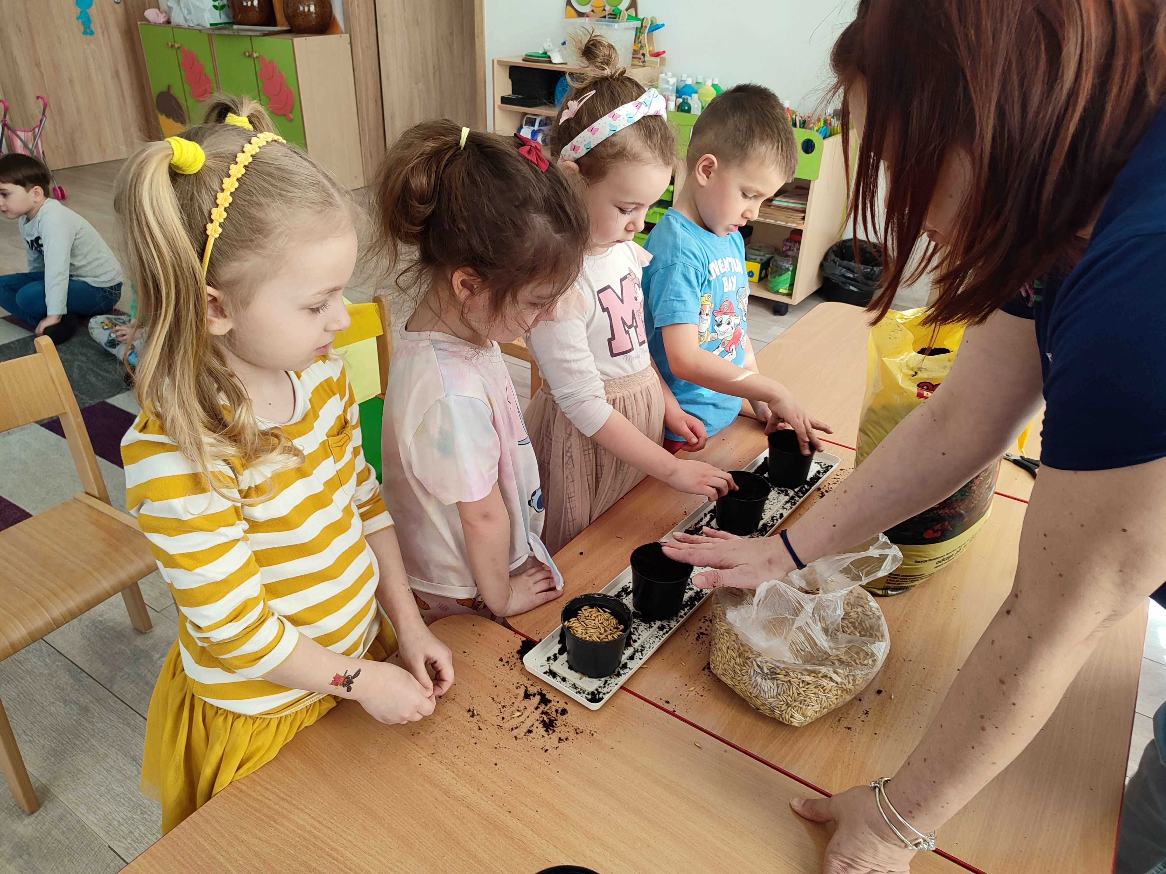 Najpierw dzieci miały wizytę Gości z Poradni Pedagogiczno-Psychologicznej, gdzie opowiedziały nam o trudnościach jakie spotykają na swojej drodze osoby niesłyszące. Potem urządziliśmy wspólne zabawy i tańce. Mieliśmy również możliwość spróbowania swoich sił w ścieżce sensorycznej….oooooj nie lada to był wyczyn, okazało się, że życie kociaka wcale nie jest takie proste jak może się wydawać. Przeżyliśmy również matematyczny dzień w kosmosie. Dzięki pomocy i uprzejmości Rodziców mogliśmy na jeden dzień zmienić się w kosmitów i poznać ich życie, gry i zabawy. Przy okazji wzbogaciliśmy swoją wiedzę o kolejne planety, mogliśmy również stworzyć swoje własne i podziwiać ich modele 3D. Na koniec wykonaliśmy swój własny kosmos w słoiku. Przywitaliśmy również wiosnę w Hajnowskim Domu Kultury na zajęciach dotyczących Wiosny. Bawiliśmy się rewelacyjnie, było mnóstwo zabaw ruchowych przy muzyce. Dzieci wykonały również swoje własne postacie wiosenne. Bawiliśmy się również w ogrodnika i wysialiśmy owies. Obserwowaliśmy codziennie jak kiełkują roślinki i jak szybko rosną. Okazało się, że mamy w grupie samych wspaniałych ogrodników. Odbyły się również warsztaty Wielkanocne na których rodzice wraz z pociechami robili stroiki świąteczne. Efekty pracy przerosły nasze najśmielsze oczekiwania. Stroiki wyszły przepiękne i z pewnością ozdobiły stoły w domach.
