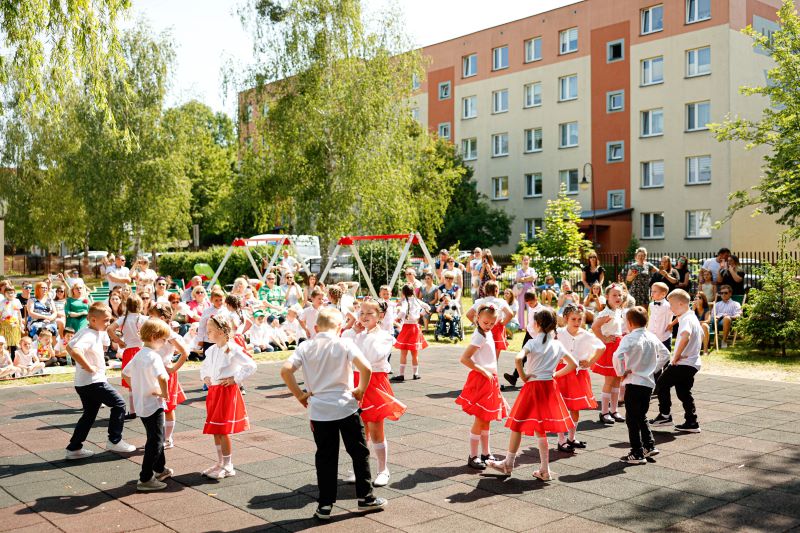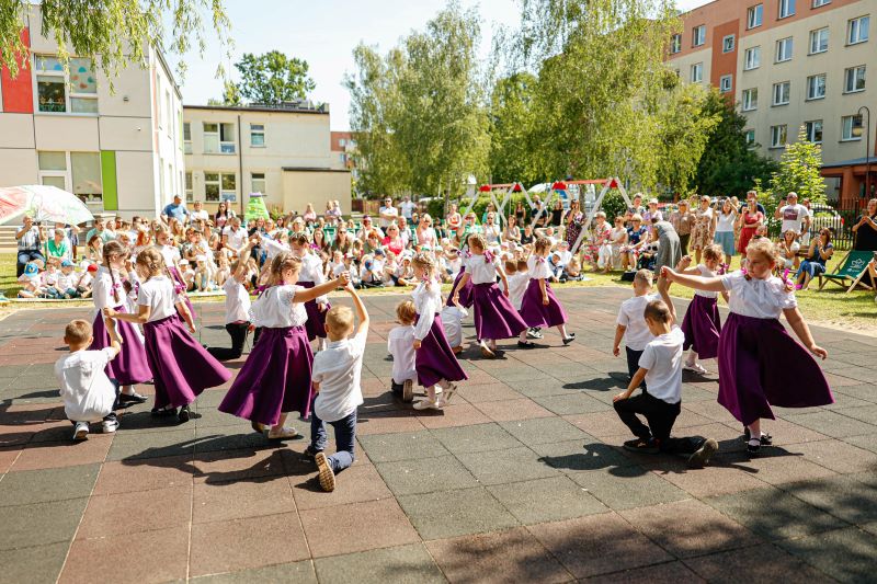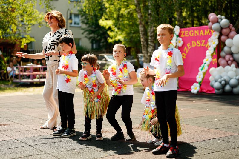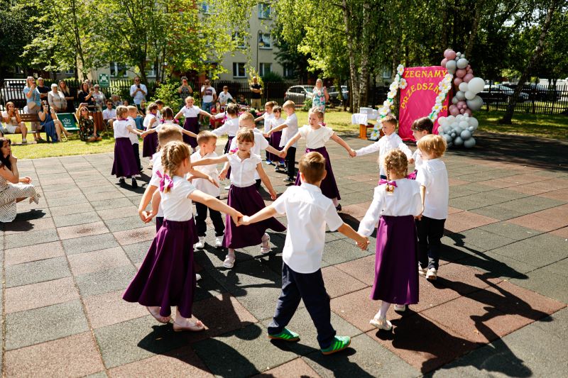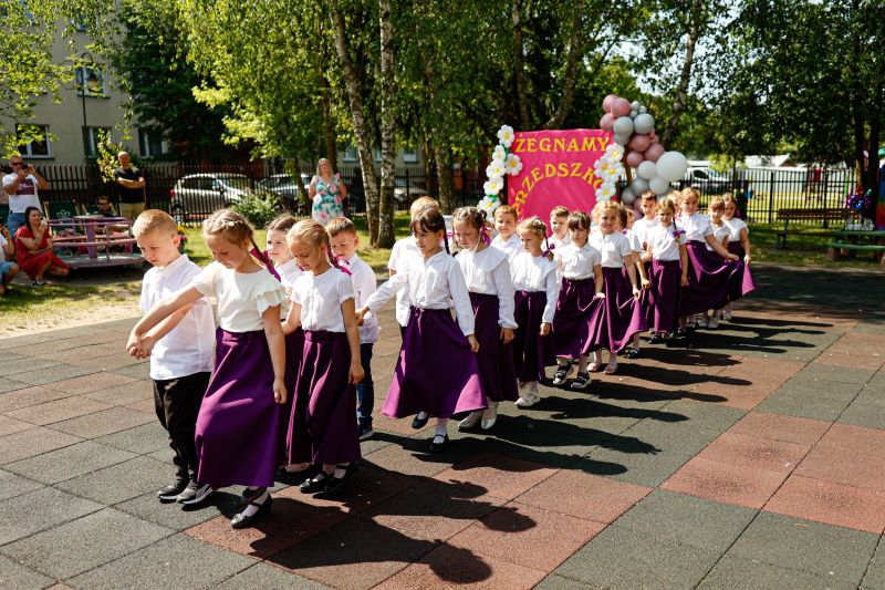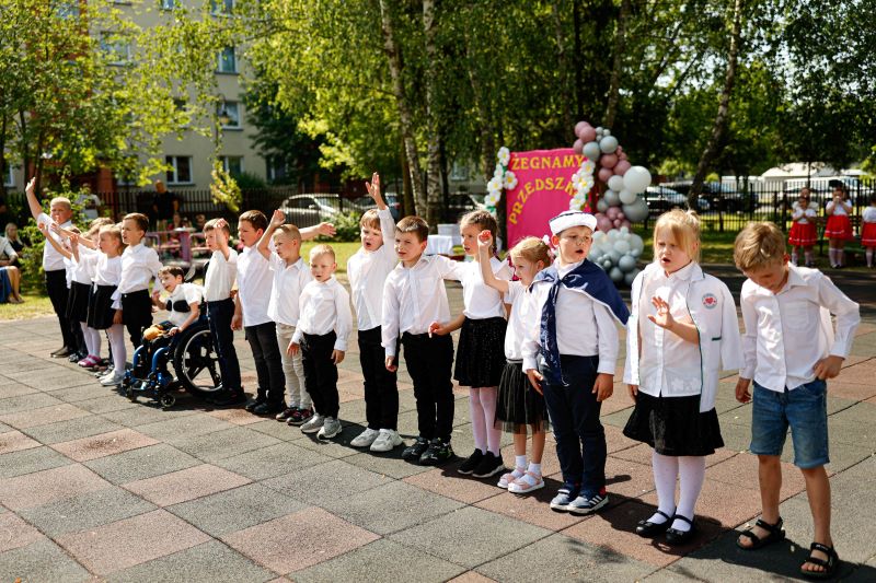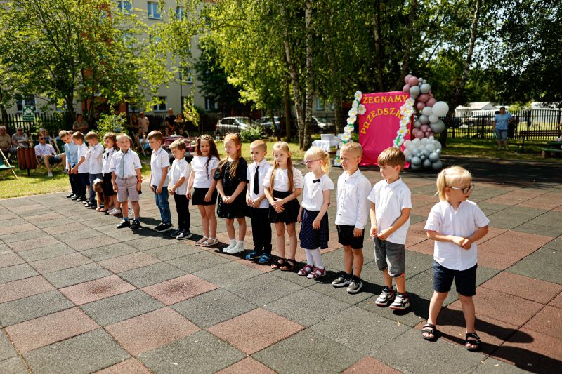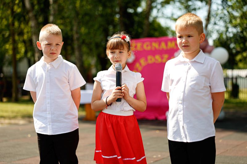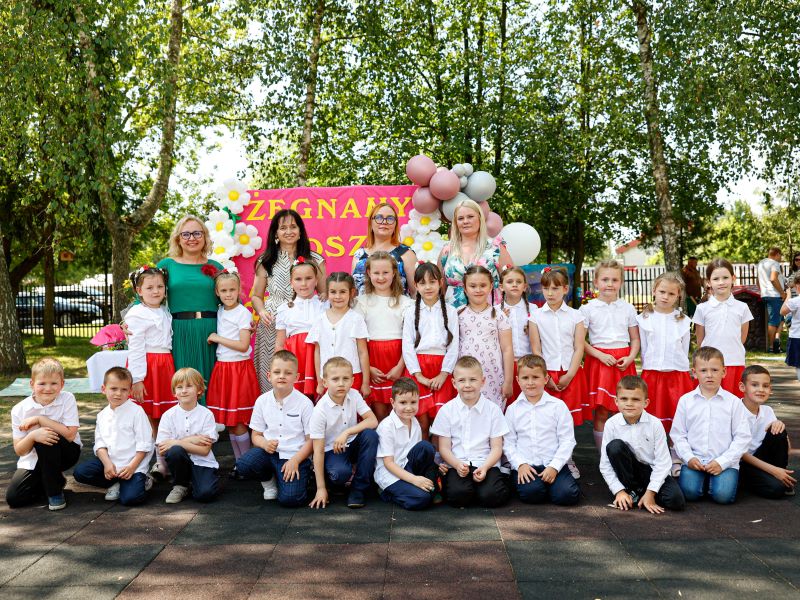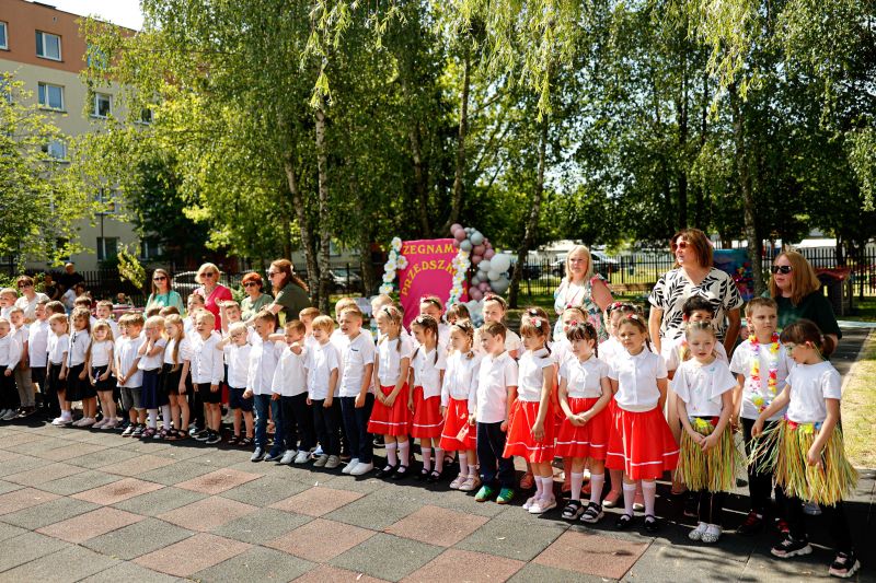 16 czerwca przy pięknej pogodzie na placu przedszkolnym odbyło sie uroczyste zakończenie starszaków. Dzieci 6-letnie zaprezentowały się podczas uroczystości pożegnalnej z przedszkolem, na którą zostali zaproszeni wszyscy rodzice najstarszych przedszkolaków. Uroczystość rozpoczęła się od podniosłego poloneza. Program był różnorodny – były piosenki, wierszyki i tańce. Wiersze i piosenki opowiadały o pożegnaniu, tęsknocie, ale i o nowych zadaniach czekających na przyszłych uczniów. W pożegnaniu uczestniczyły również dzieci 5-letnie z grupy Lisków. One również wierszem i tańcem podziękowały starszym przyjaciołom za wspólne chwile spędzone w przedszkolu.