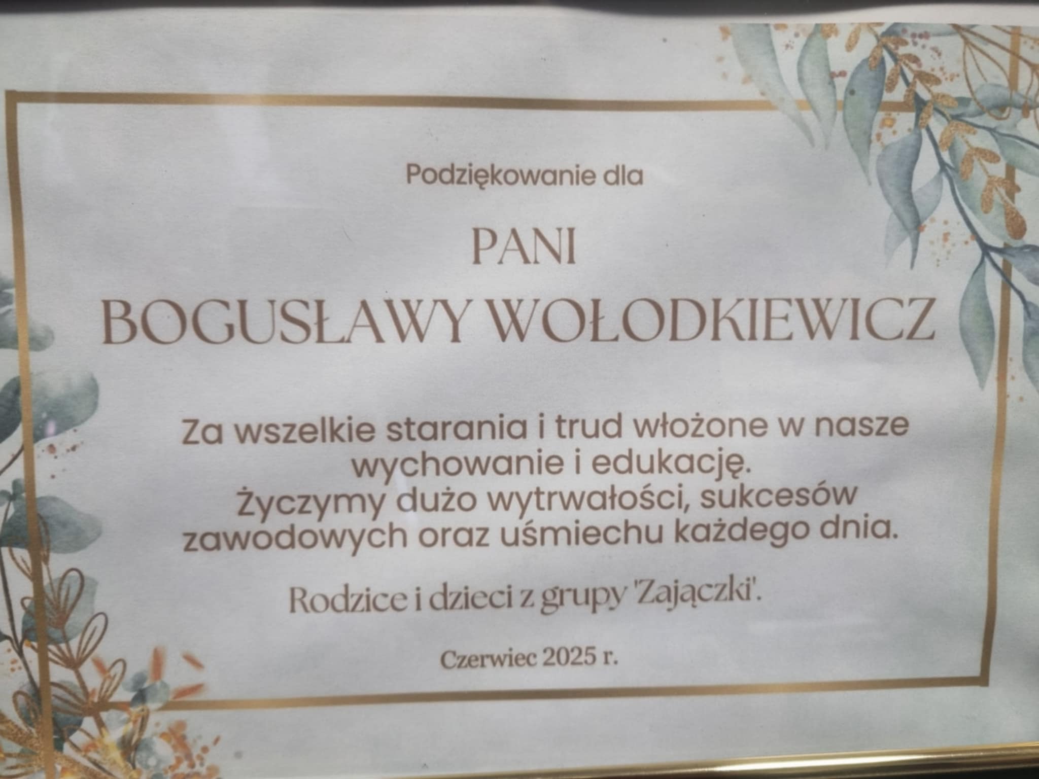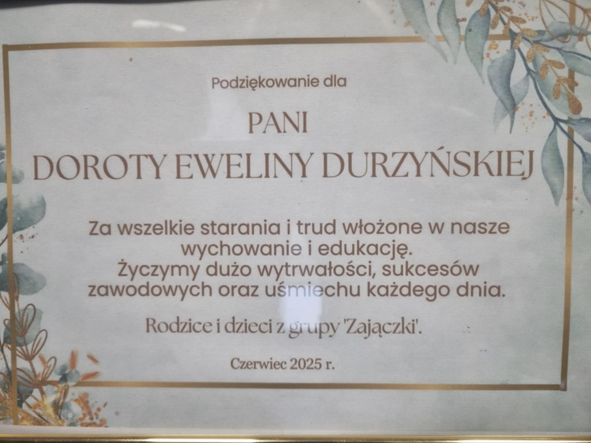 Podczas zakończenia roku naszych grup starszych, rodzice dzieci wyrazili swoją wdzięczność dla pracy nauczycieli i dyrekcji. Z ogromnym wzruszeniem przyjęliśmy ciepłe słowa – to dla nas dowód zaufania i wyznacznik, że oferta przedszkola spełnia oczekiwania. Drodzy rodzice, dziękujemy Wam za ten wspólny czas. Dziękujemy za współpracę, aktywny udział w życiu naszego przedszkola i zaangażowanie. Naszą misją jest wspierać dzieci w procesie dorastania. Z radością i satysfakcją będziemy wspominać momenty, w których mogliśmy współdziałać dla dobra naszych/waszych pociech. Życzymy Państwu samych sukcesów na niwie wychowawczej.