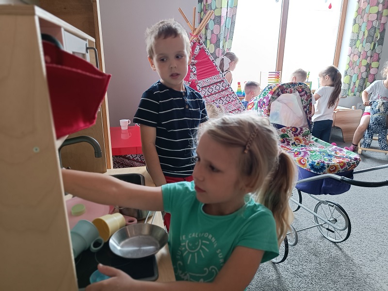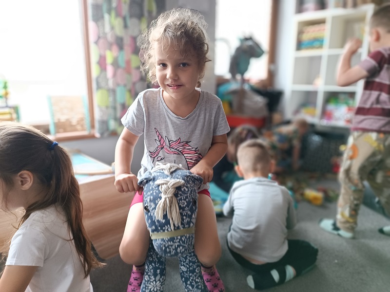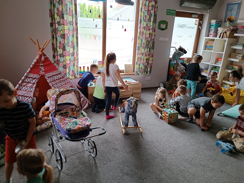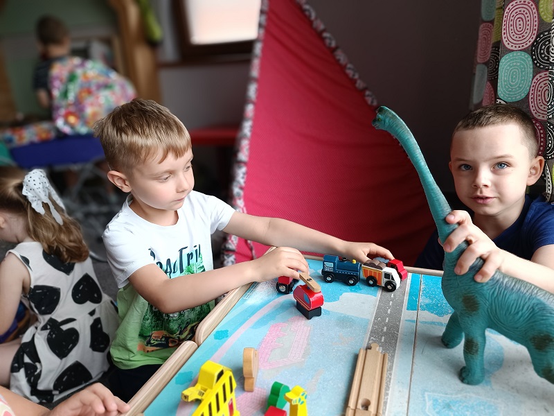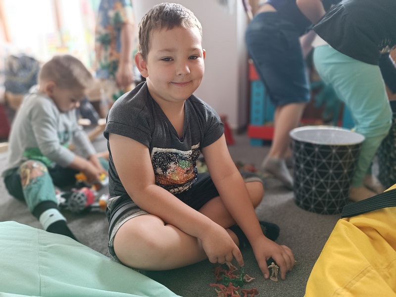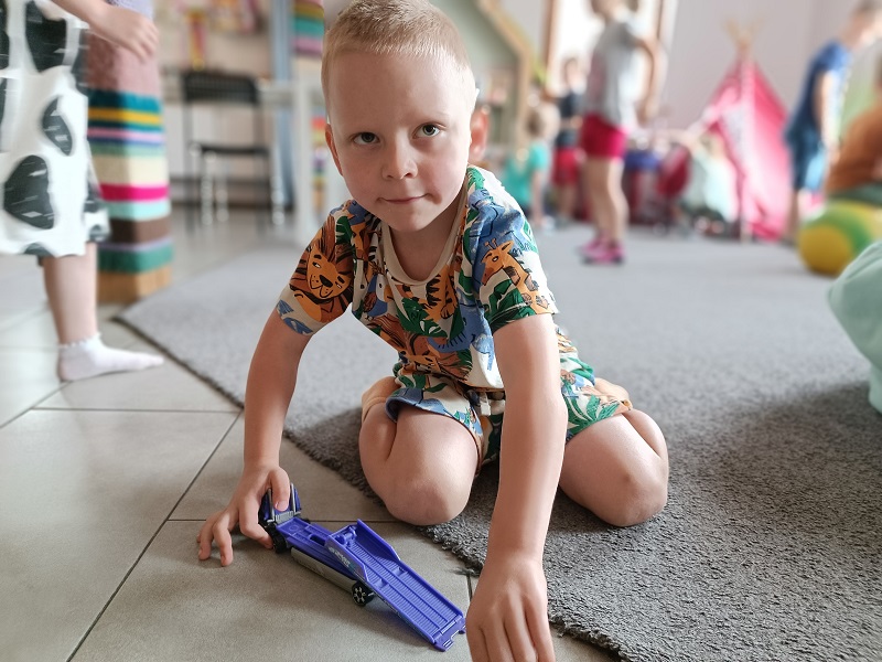 Po udanych warsztatach na dzieci czekała zabawa. Każdy przedszkolak odnalazł dla siebie miejsce do zabawy i spędzenia czasu wolnego. Były wyścigi samochodami, zabawy klockami i skoki na piłkach. To był wspaniały dzień, a dowodem są zdjęciach na których widać uśmiechnięte twarze przedszkolaków.