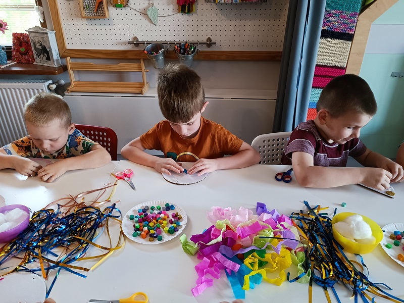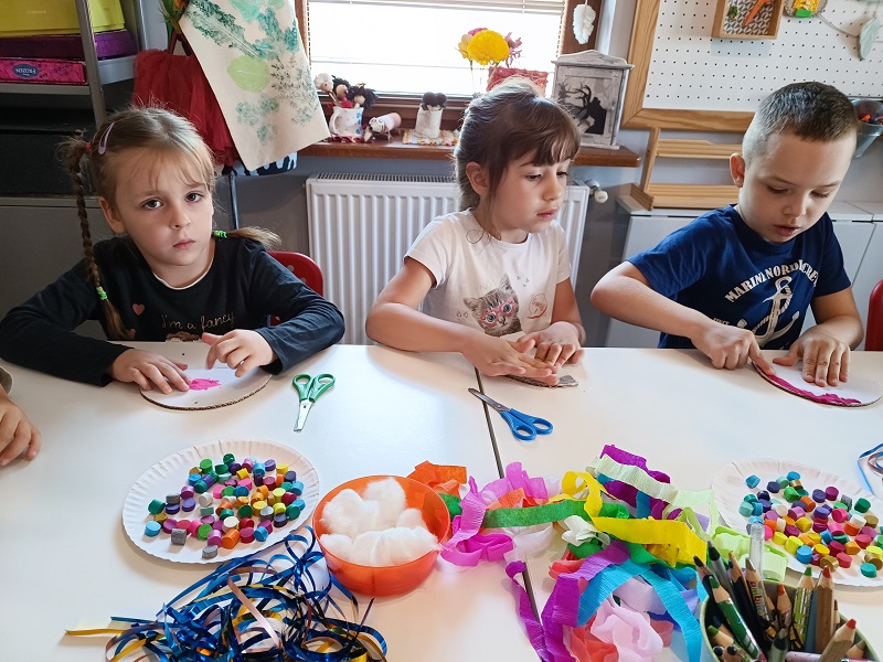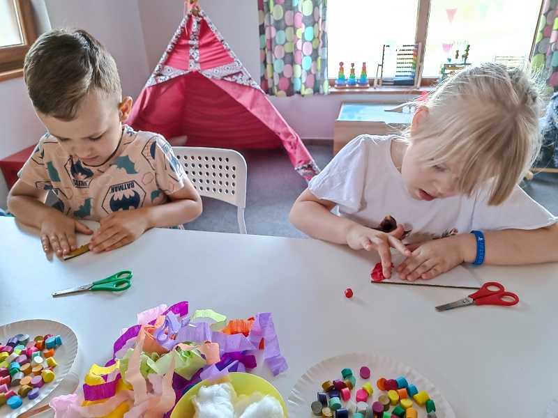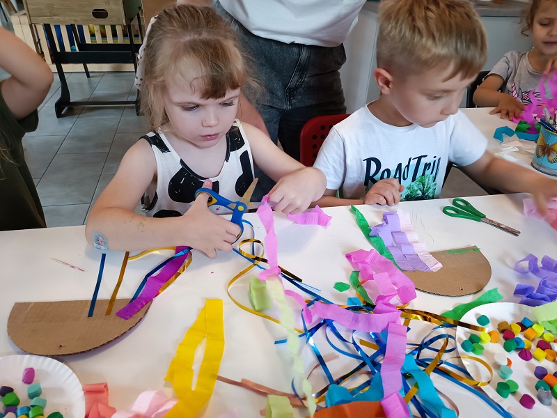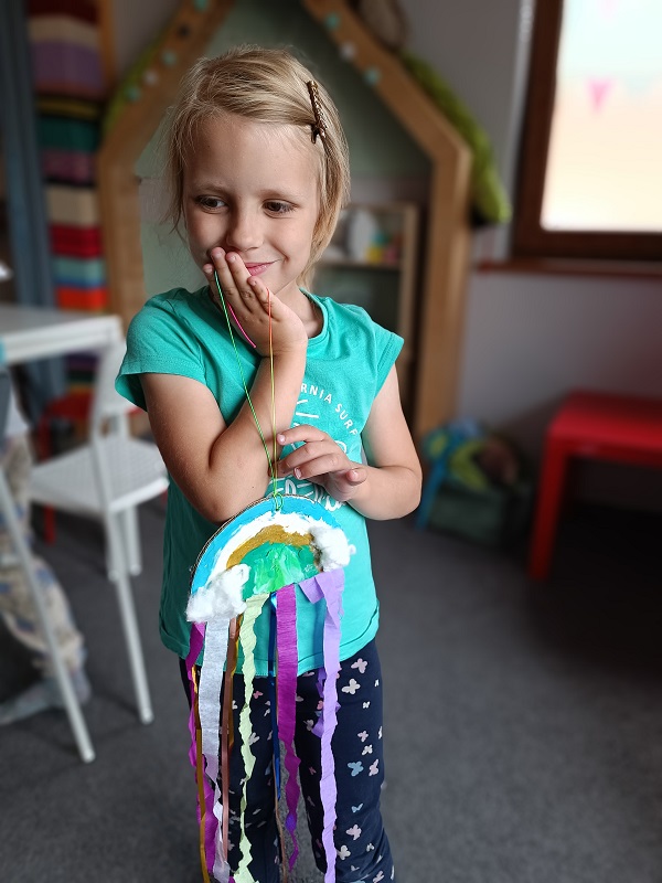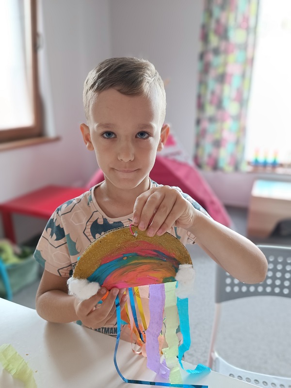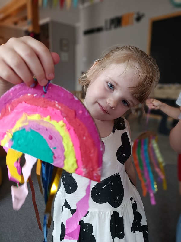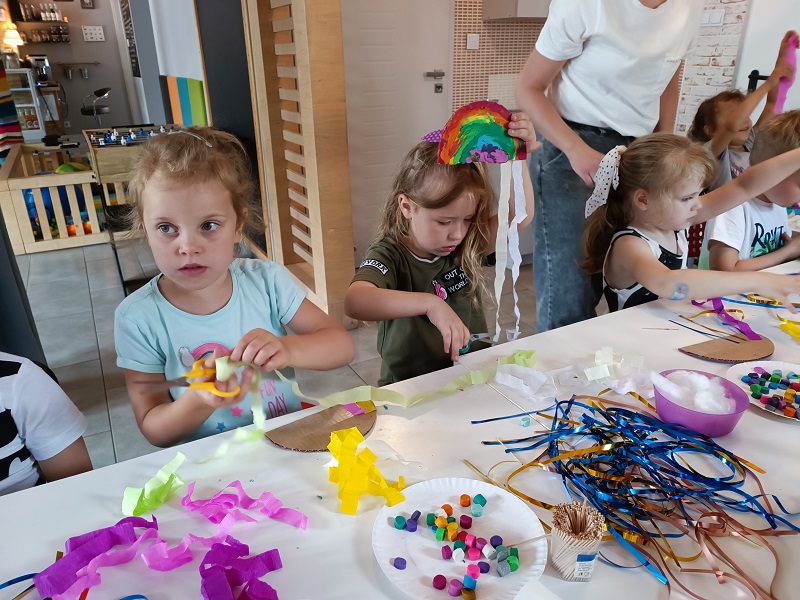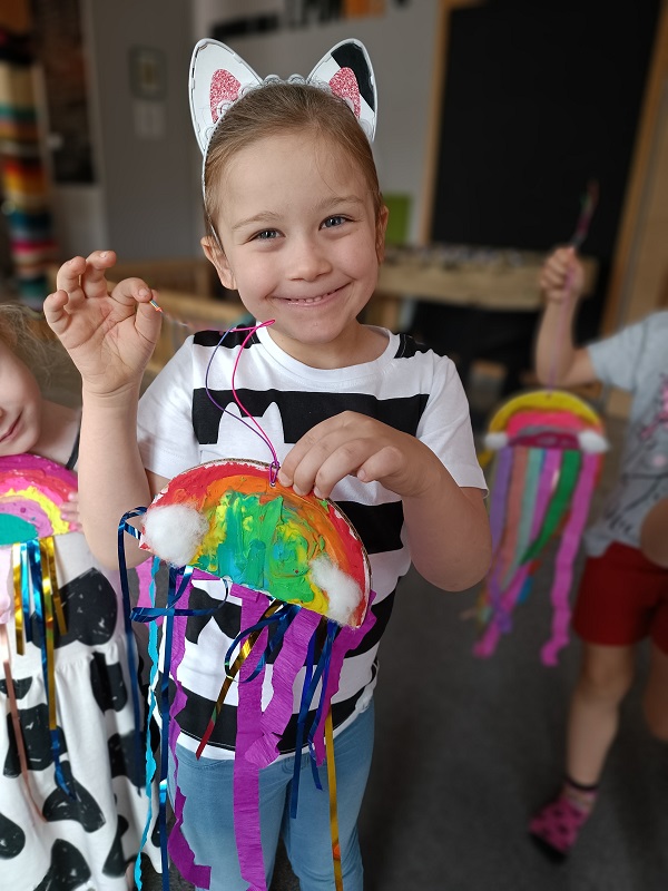 W czerwcu dzieci z grupy Żuberkow wybrały się do klubokawiarni Lipowart na wspaniałe, przedwakacyjne warsztaty. Na dzieci czekało nie lada wyzwanie - wykonanie wakacyjnej tęczy. Przy użyciu plasteliny i kolorowych tasiemek dzieci tworzyły prawdziwe dzieła sztuki. Była to świetna okazja do poznania ciekawych technik plastycznych i pobudzania radości dzieci z efektów pracy rąk własnych.